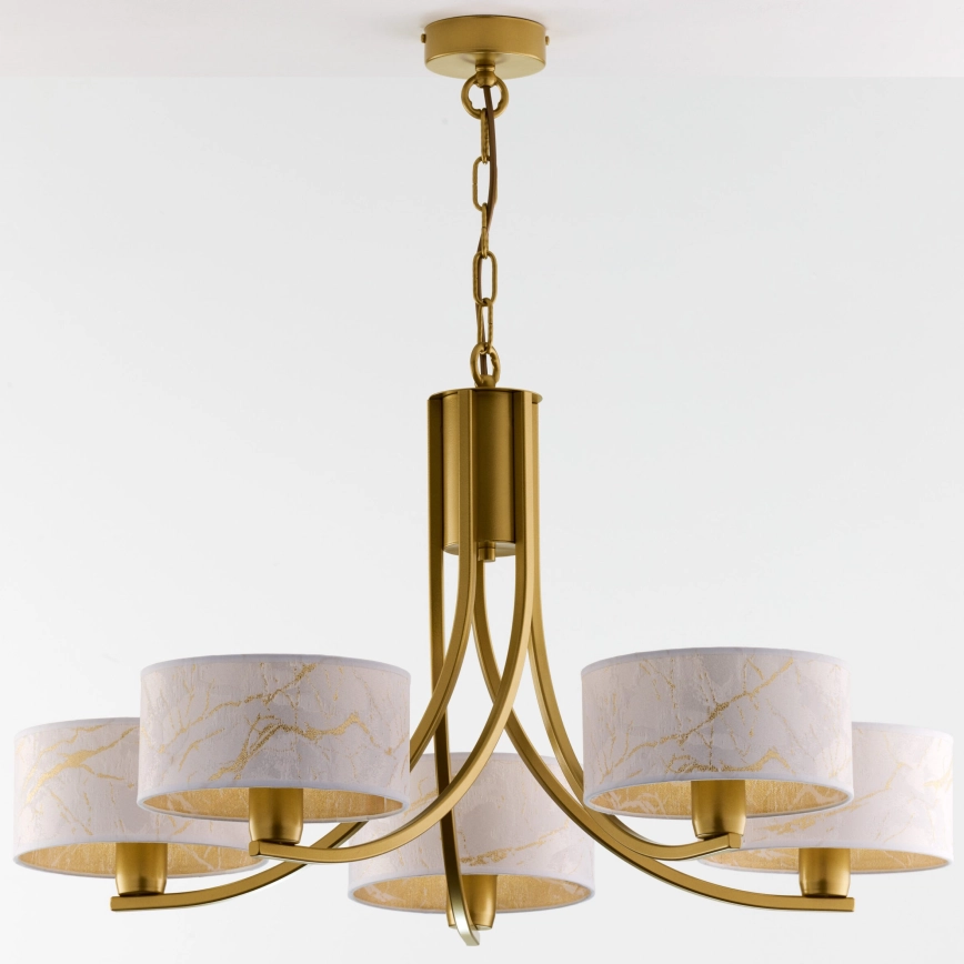 Jupiter 2097 - Luster na lancu ARTHUR 5xE27/15W/230V bijela/zlatna/mramorni dekor