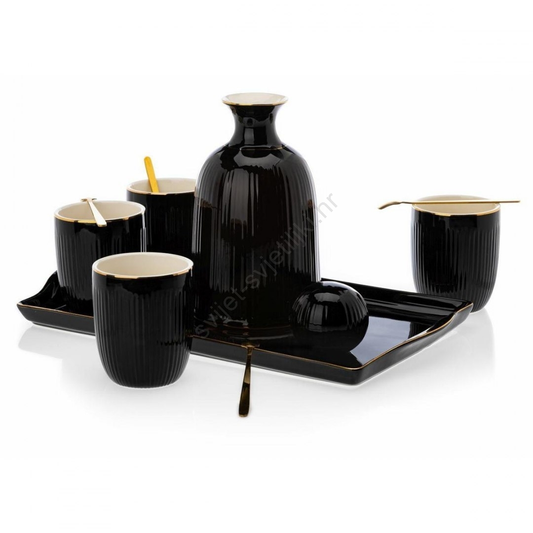 Keramički set šalica s karafom i pladnjem KENDI crni