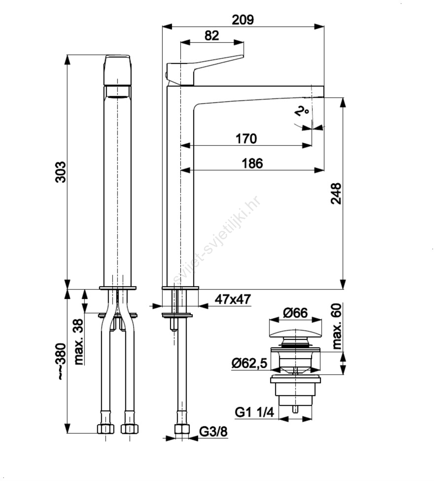 • Paket sadrži: mali klik-klak odvod, set za montažu s brtvama, M10x1/G3/8" fleksibilne cijevi (L=450 mm, 2 kom).