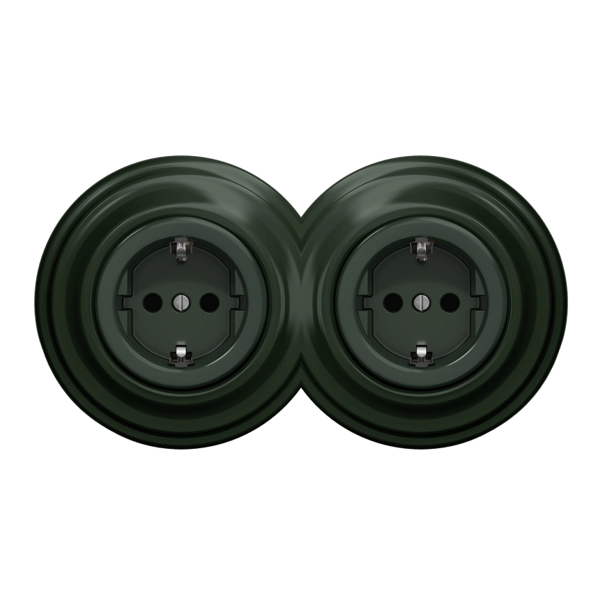 Kliklap - Dvostruka retro kućna utičnica s okvirom SCHUKO 230 V, zelena