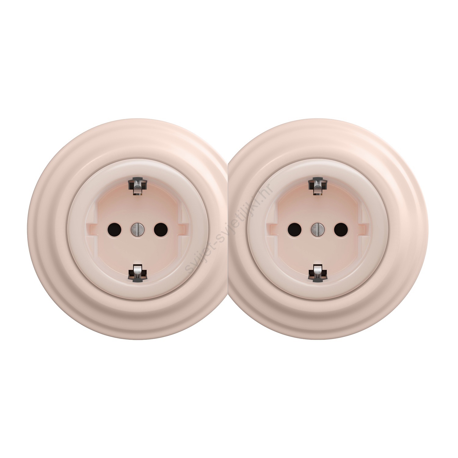 Kliklap - Dvostruka retro kućna utičnica s okvirom SCHUKO 230V/16A staroružičasta