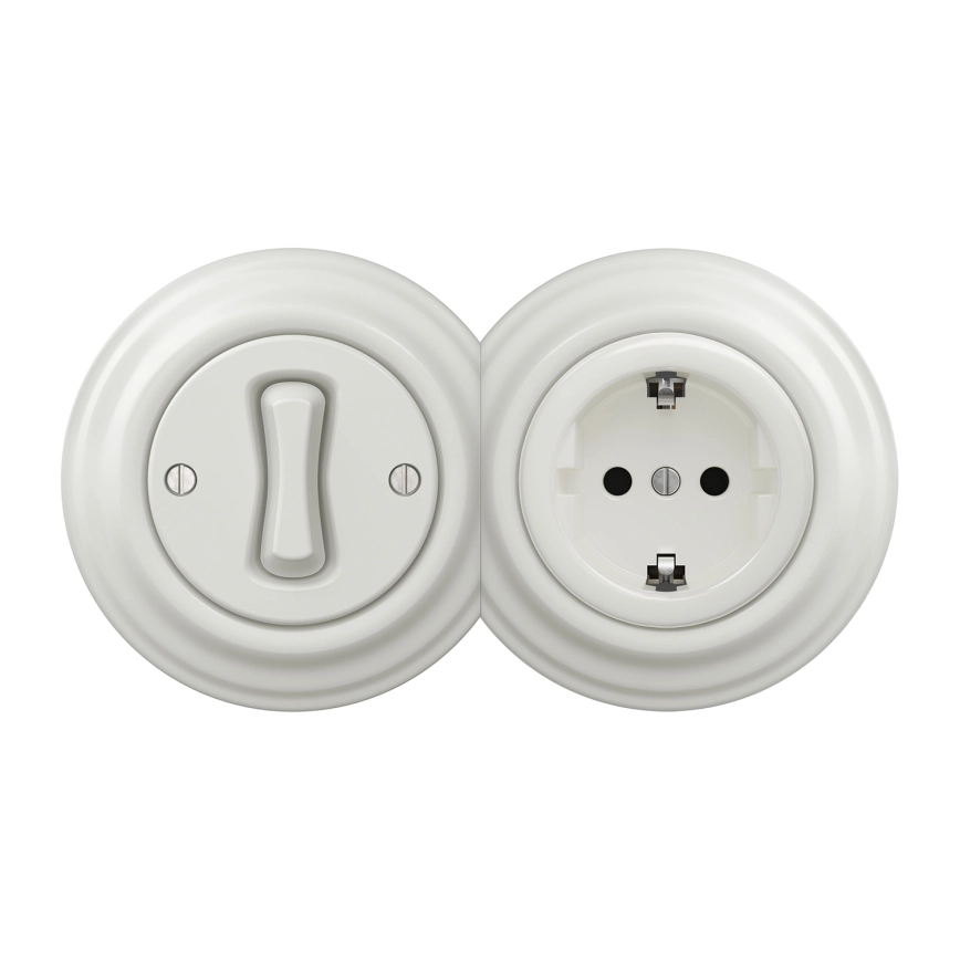 Kliklap - Retro jednopolni prekidač br. 1 i SCHUKO utičnica 230V s okvirom, bijela