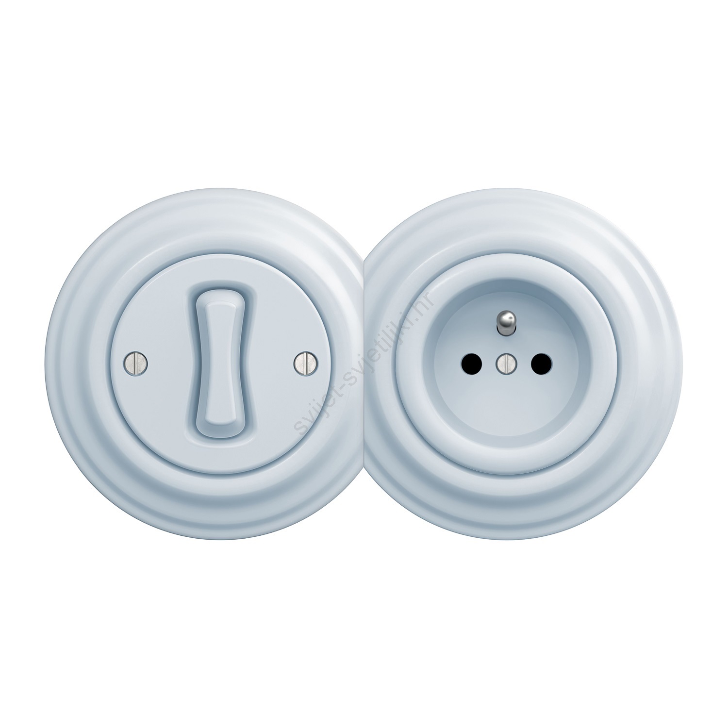 Kliklap - Retro jednopolni prekidač br. 1 i utičnica 230V s okvirom plave boje