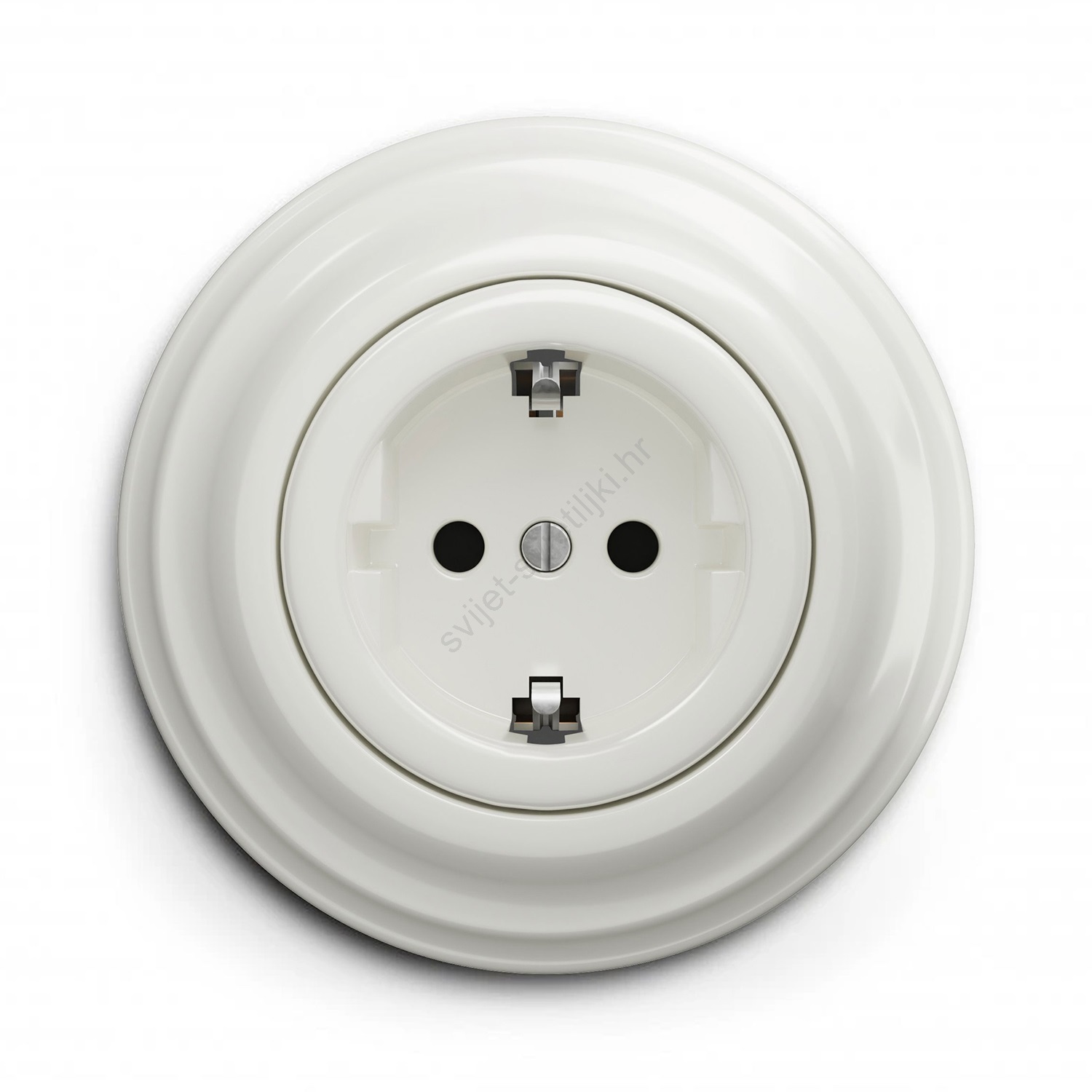 • Kliklap - Retro bijela keramička kućna utičnica s okvirom SCHUKO 230V/16A
