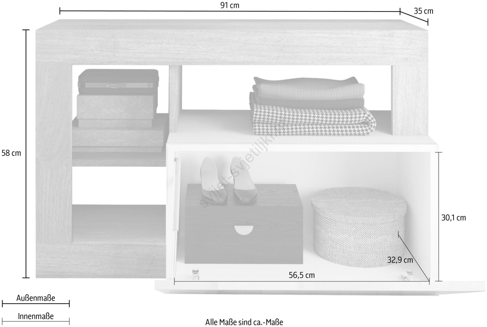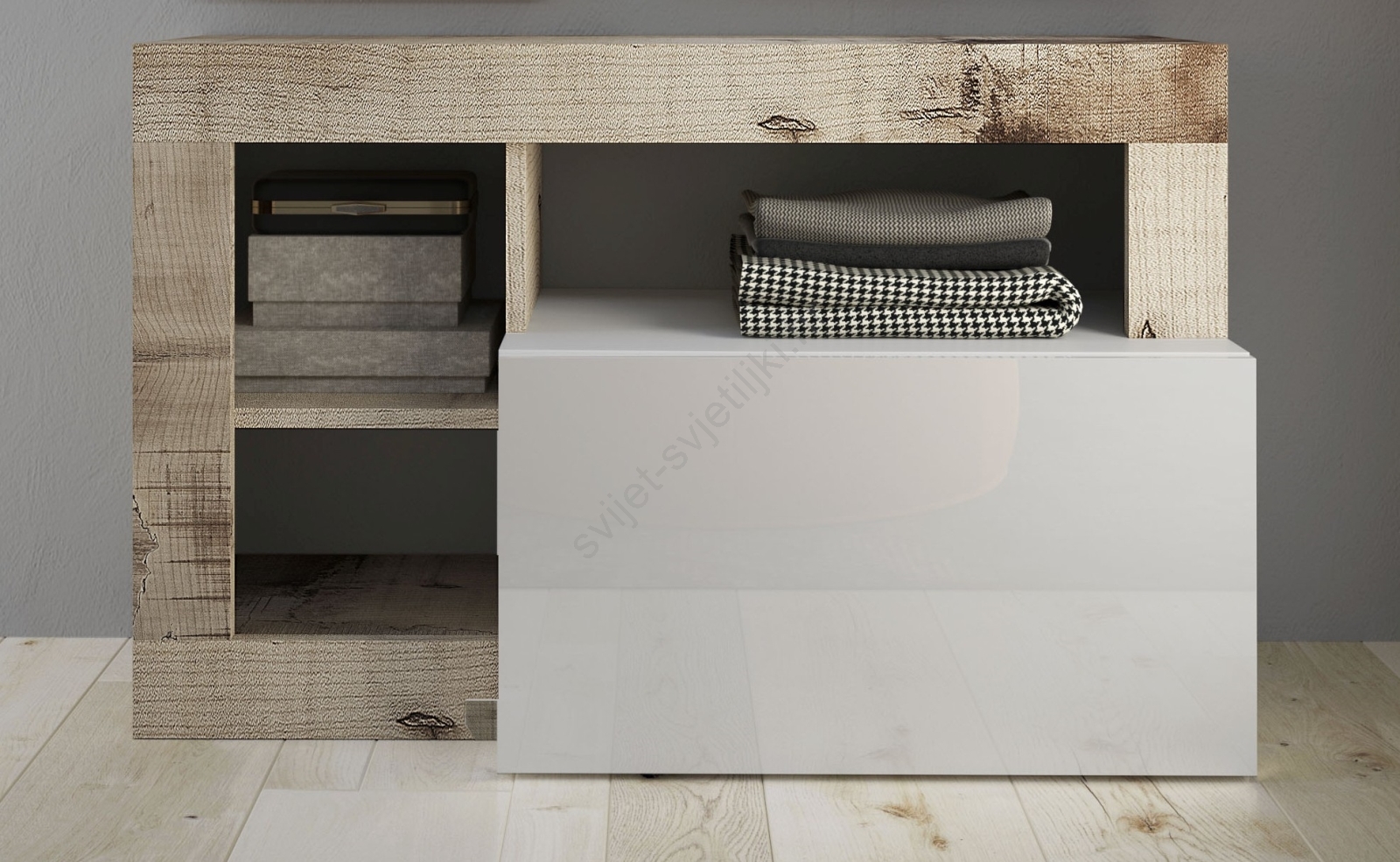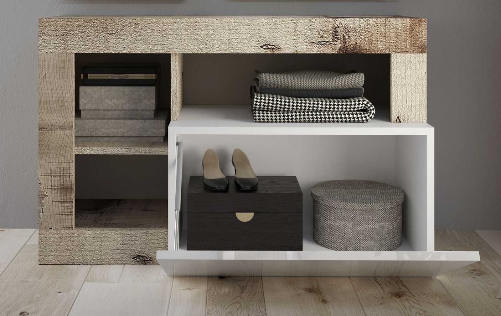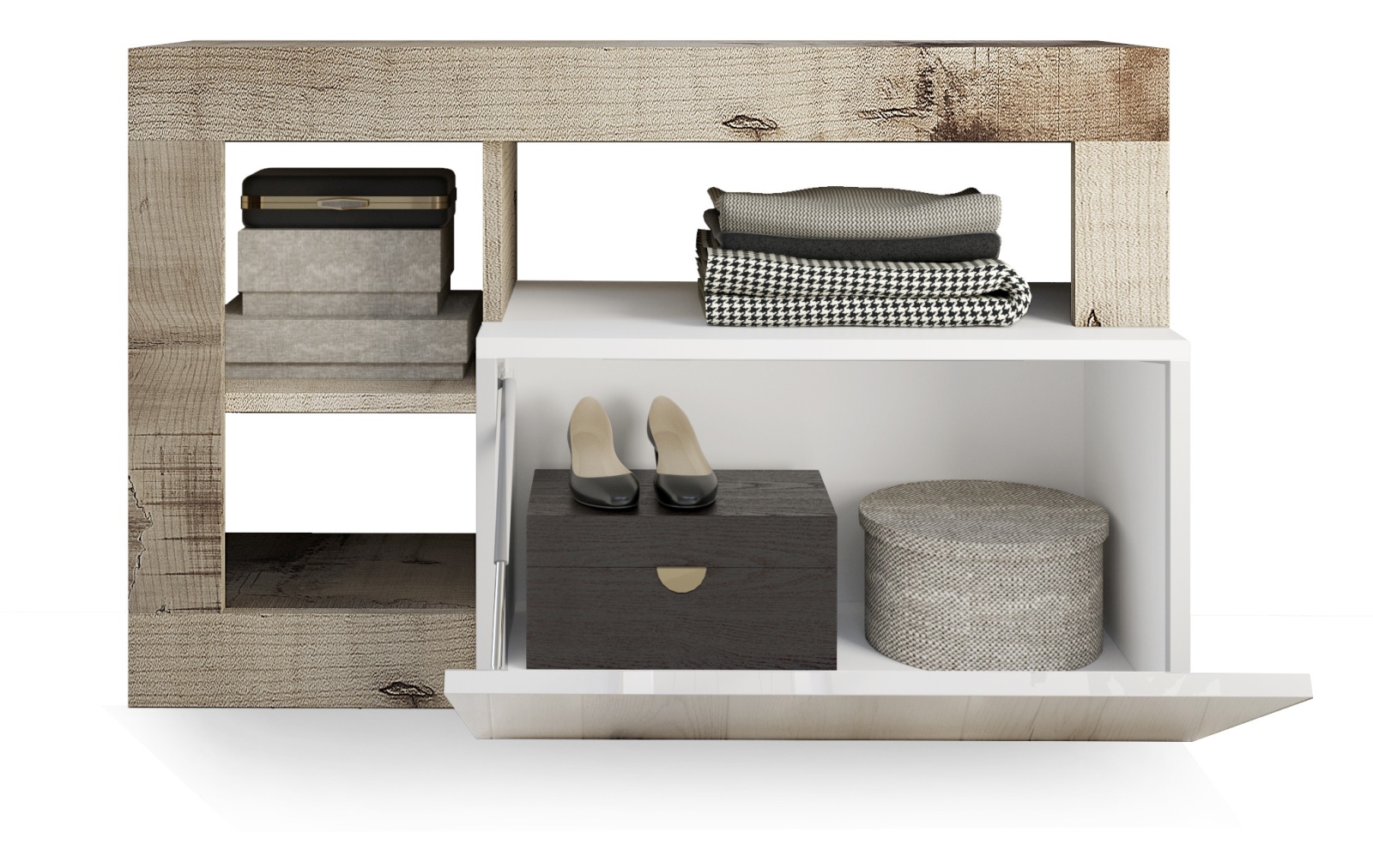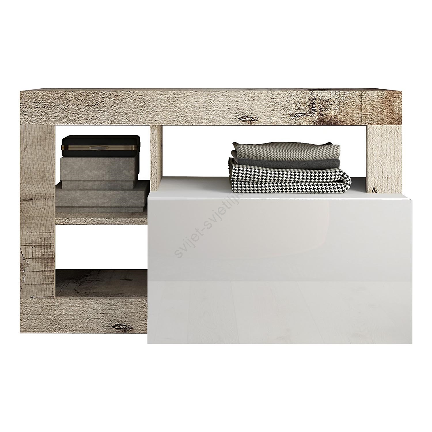 • Posjeduje 3 otvorene police i unutarnju policu s preklopnim otvaranjem za odlaganje torbi, cipela i sezonskih stvari.