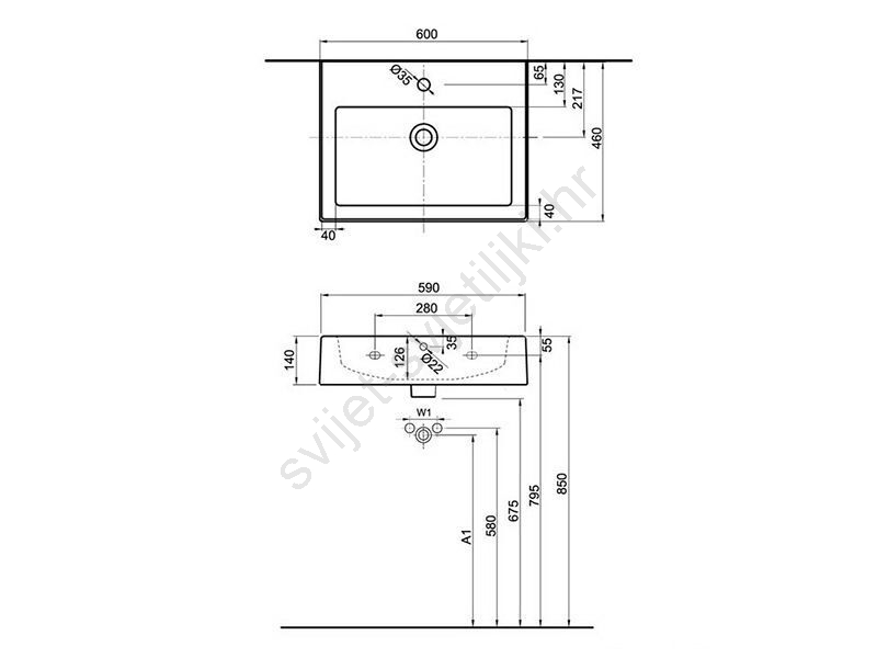 • Umivaonik za kupaonski namještaj s preljevom.