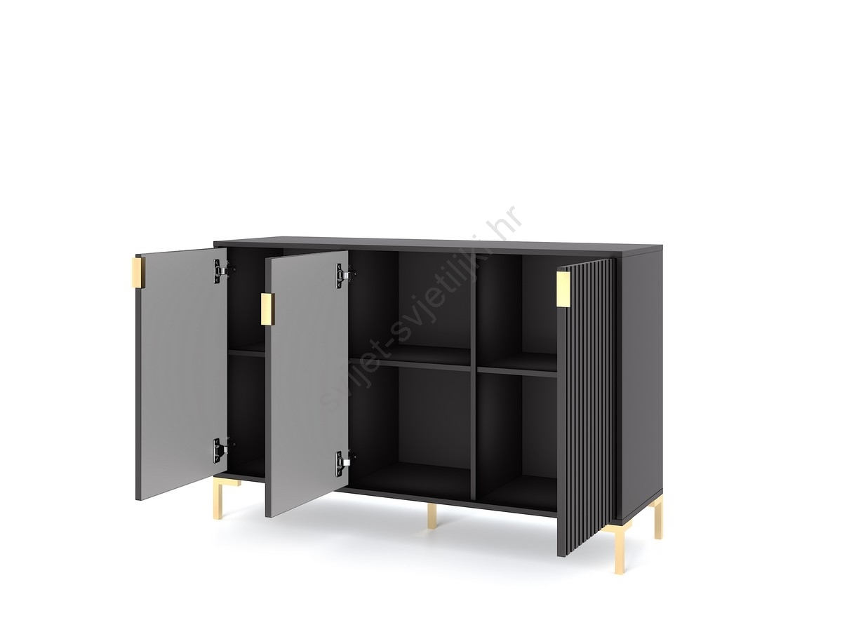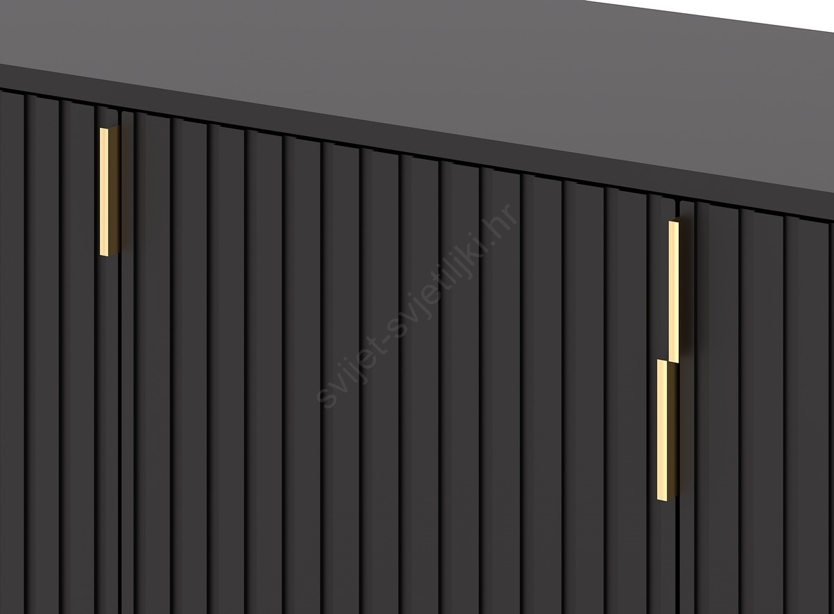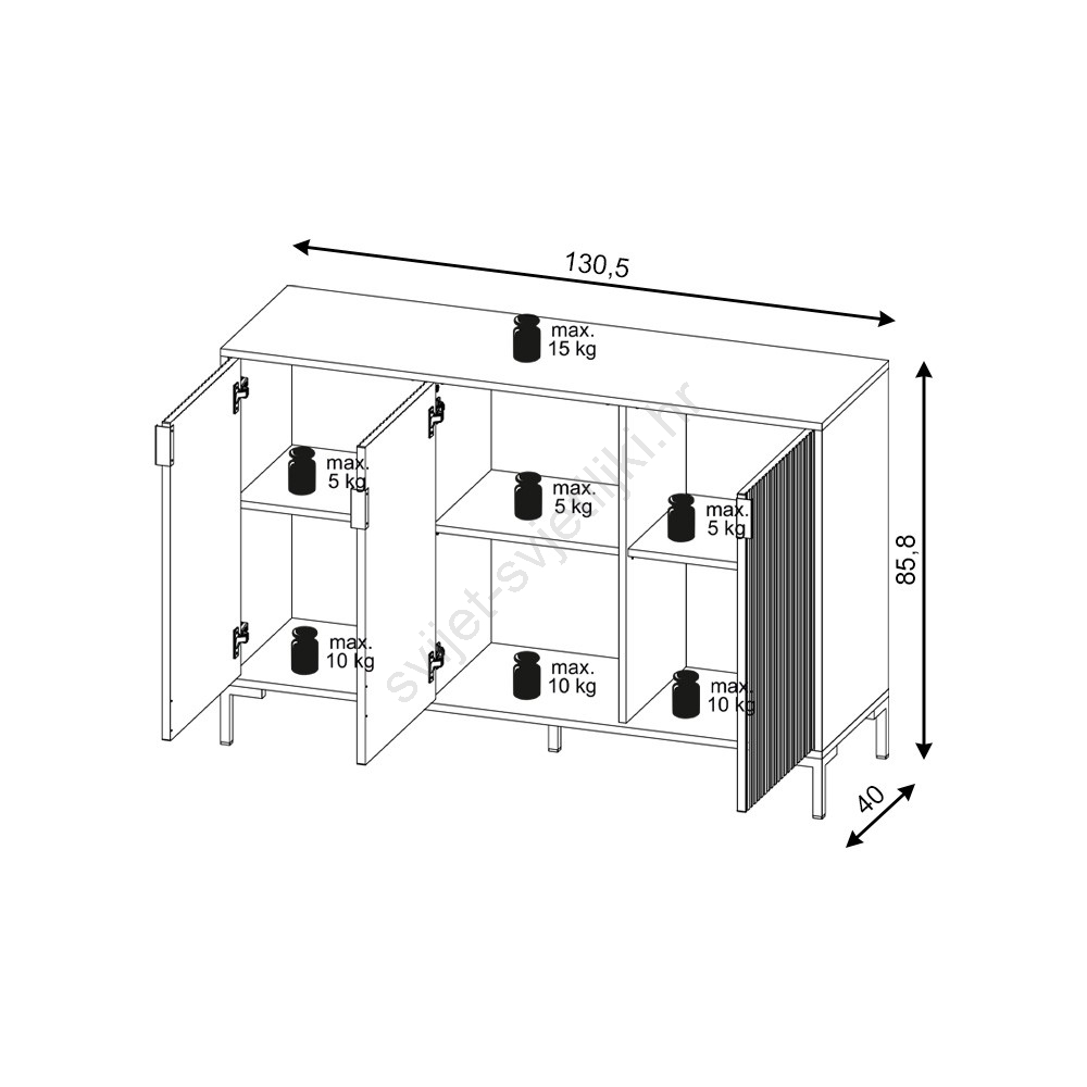 • Posjeduje šest polica i tri vrata s vertikalnim rebrastim uzorkom.