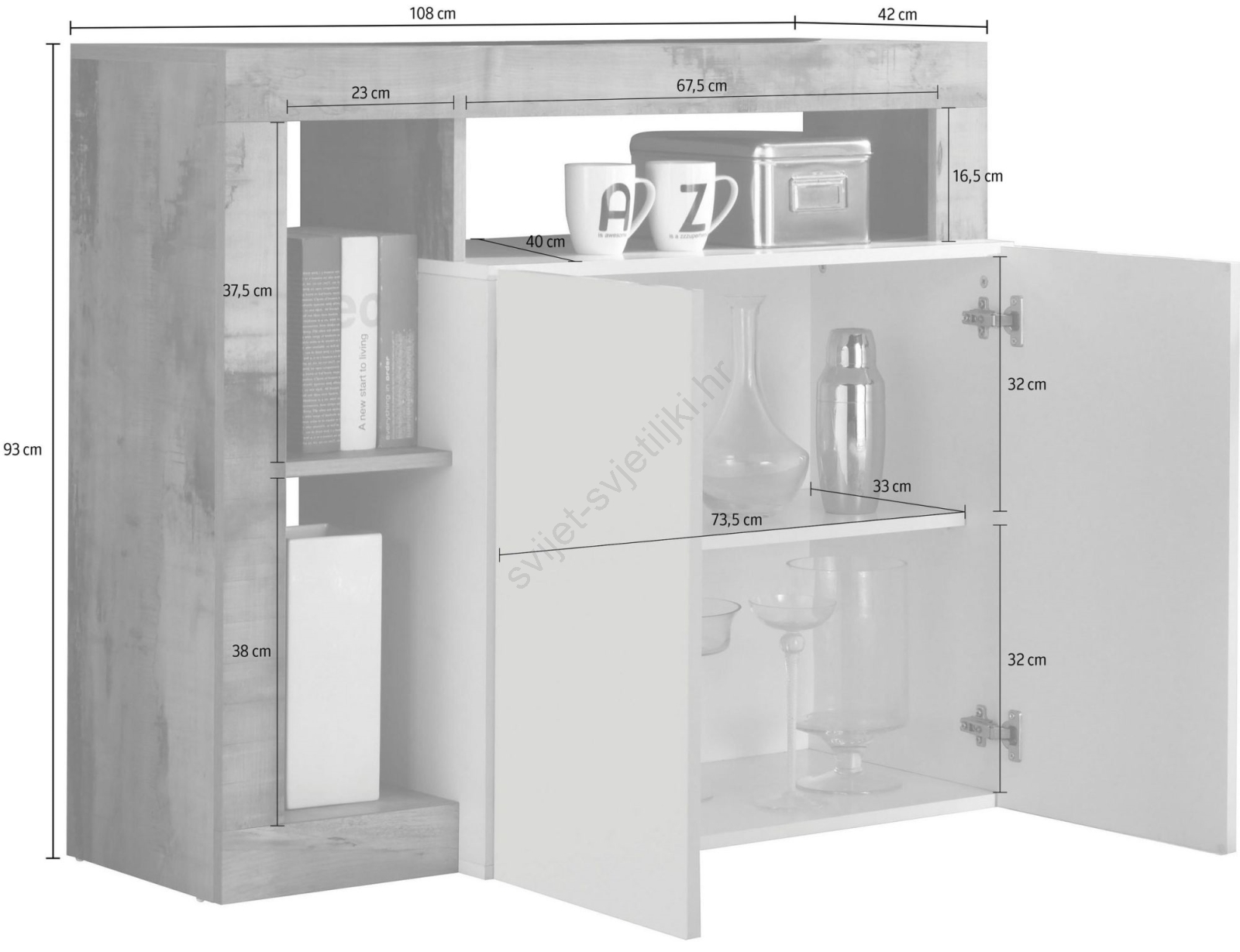 • Komoda LENOR bijela/siva beton