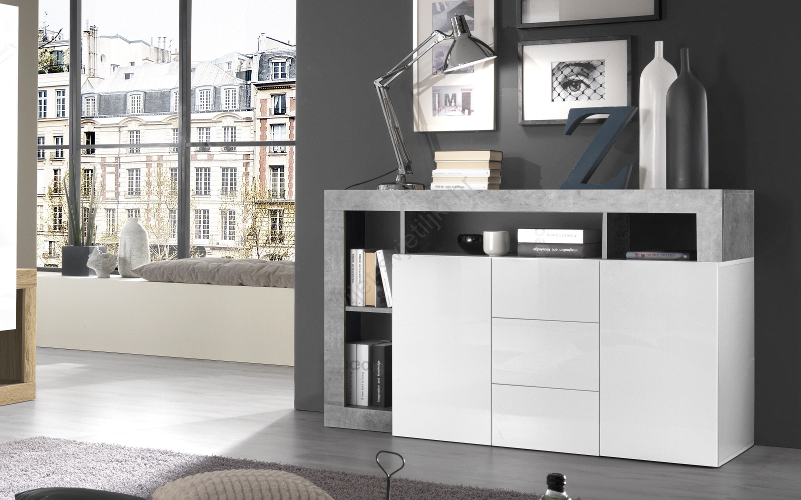 • Komoda LENOR bijela/siva beton