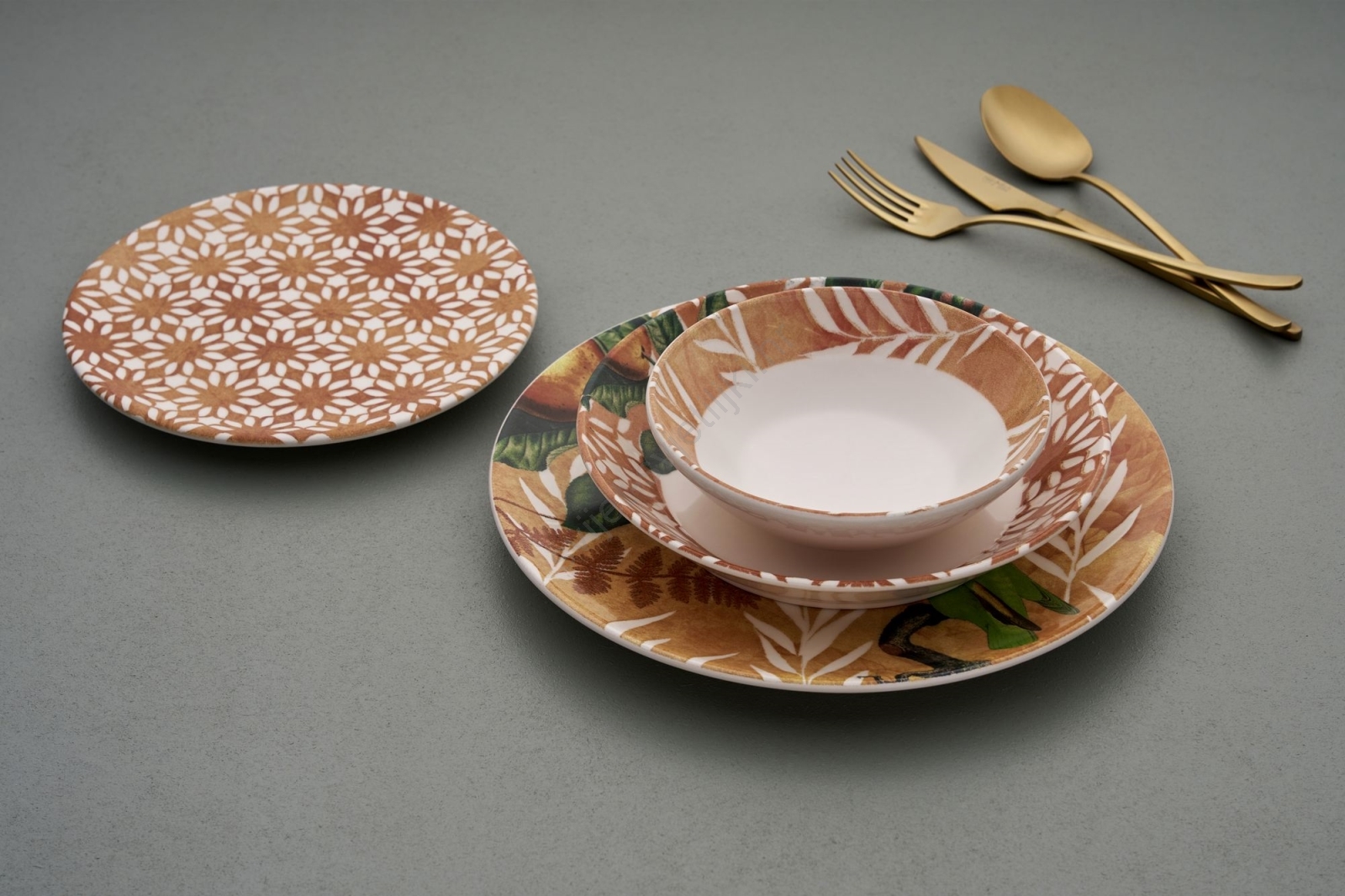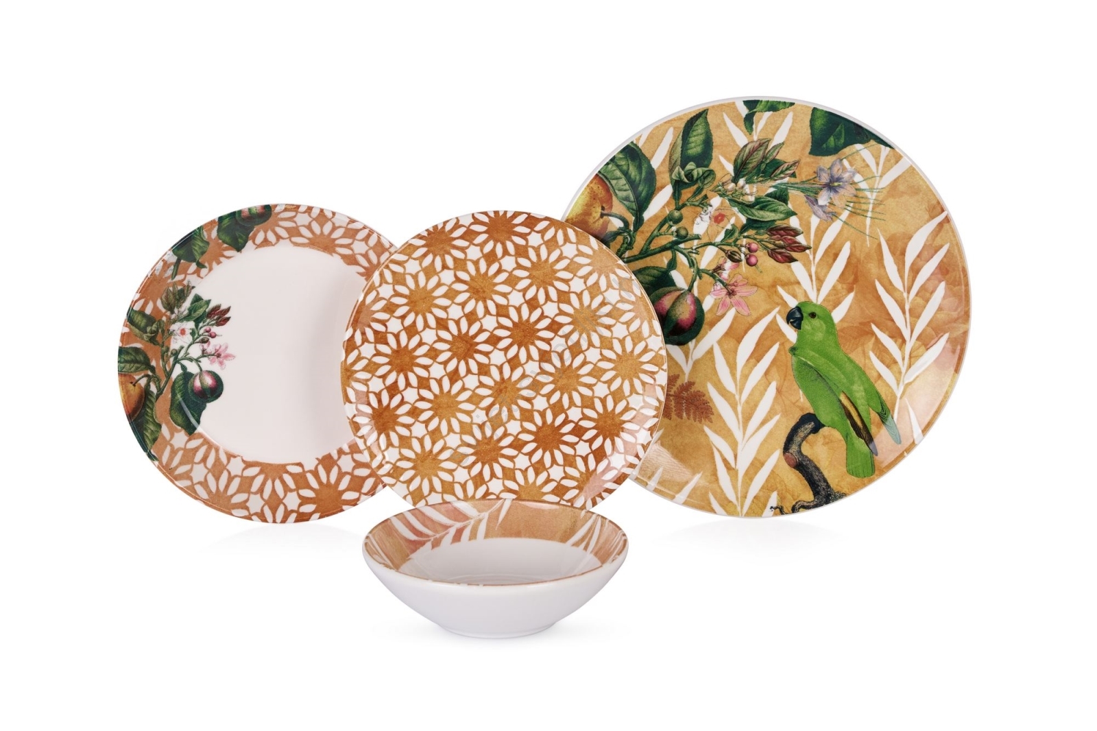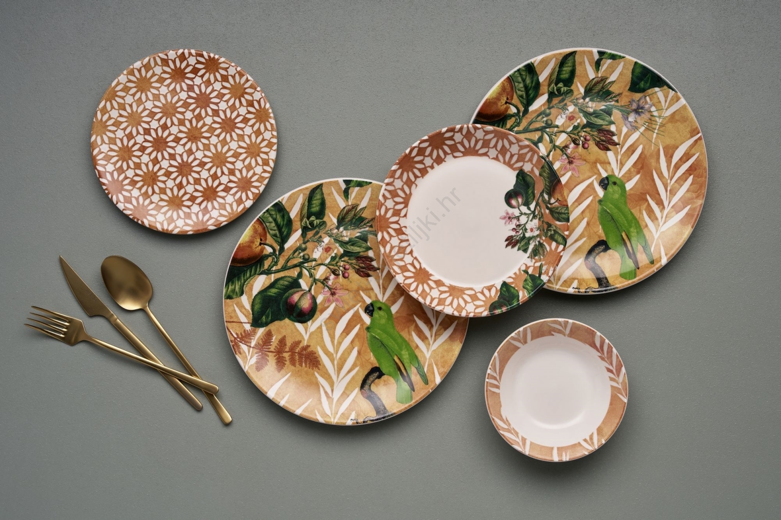 Komplet posuđa 24 kom. narančasta/zelena/keramika