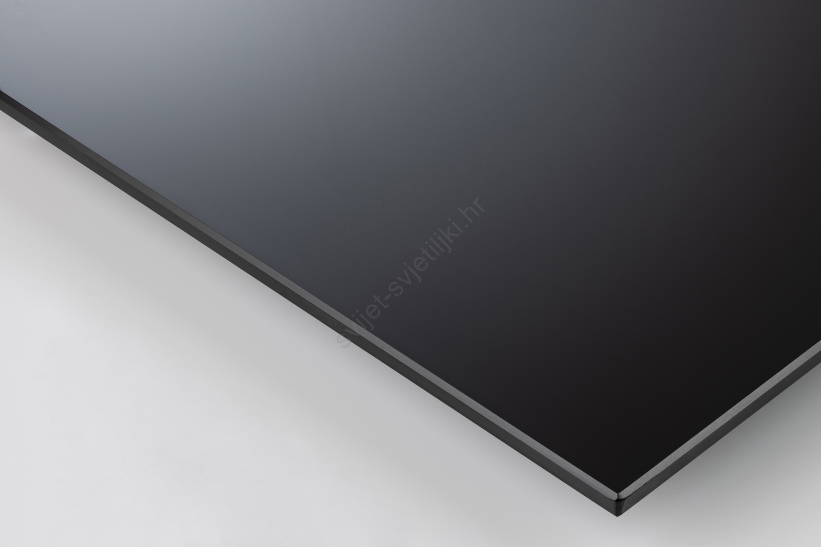 • Ploča stola izrađena je od crnog kaljenog stakla i iverice u dekoru hrasta.