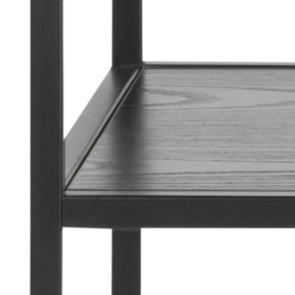 • Gornja ploča i 2 police od crnog, grubo strukturiranog melamina; podnožje od čelika s mat crnim praškastim premazom.