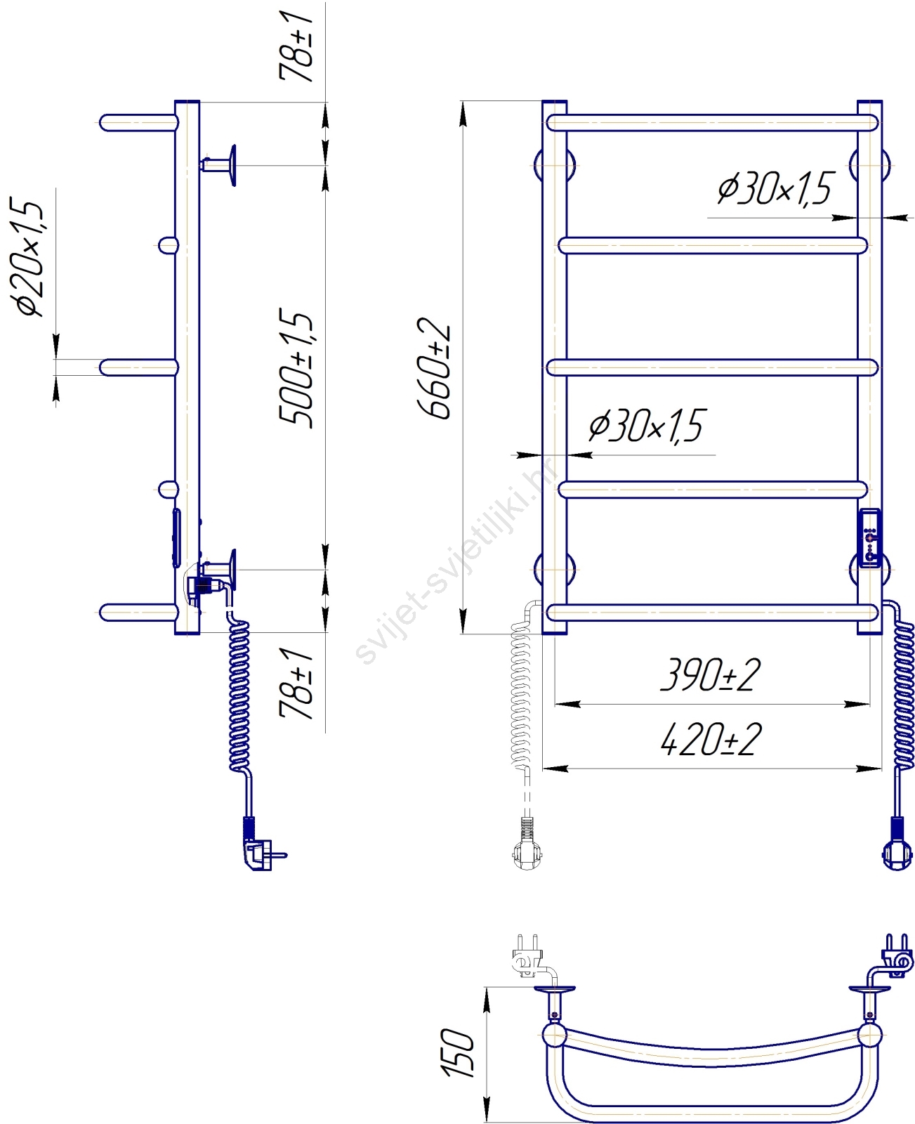 • Električno grijani kupaonski ljestvasti radijator, pogodan za sušenje ručnika i dodatno grijanje kupaonice.