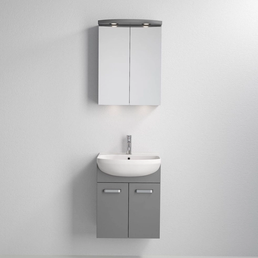 Kupaonski ormarić s umivaonikom Vang + LED ormarić s ogledalom, 230 V, IP44, u sivoj boji