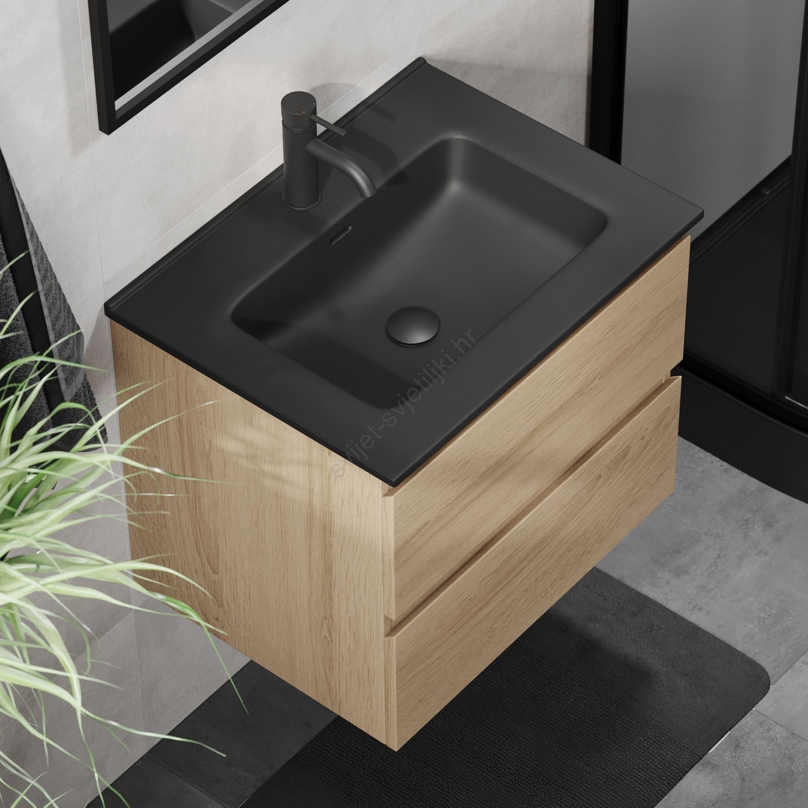 • Kupaonski ormarić s umivaonikom KENWOOD 61 cm hrast/crna