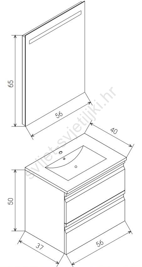 • Dimenzije donjeg ormarića: 50 x 40 x 56 cm.