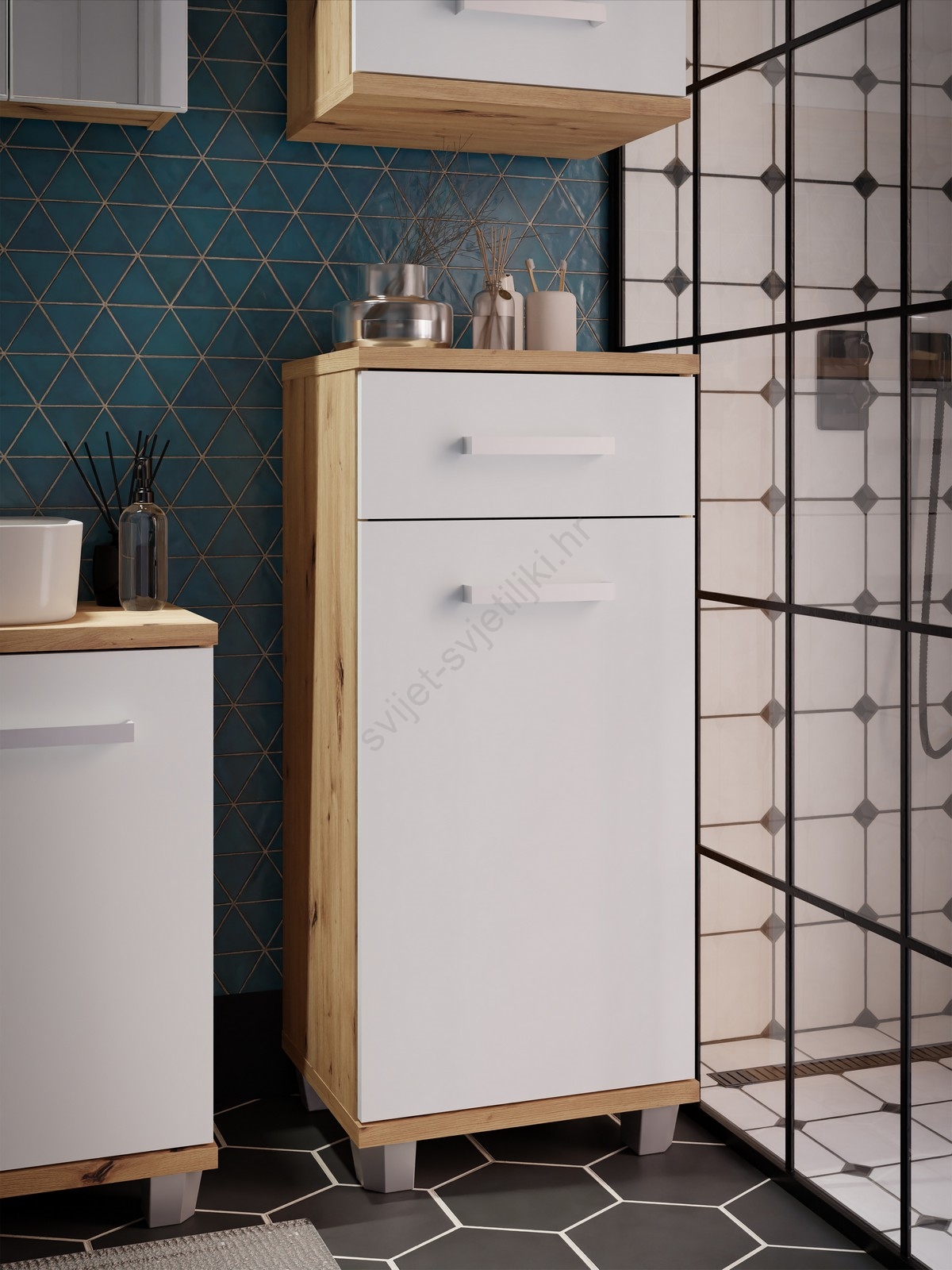 • Kupaonski ormarić VENOM, bijeli/hrast artisan