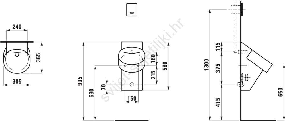 • Pisuar je bez ruba, što eliminira površine na kojima se nakupljaju nečistoće i bakterije.