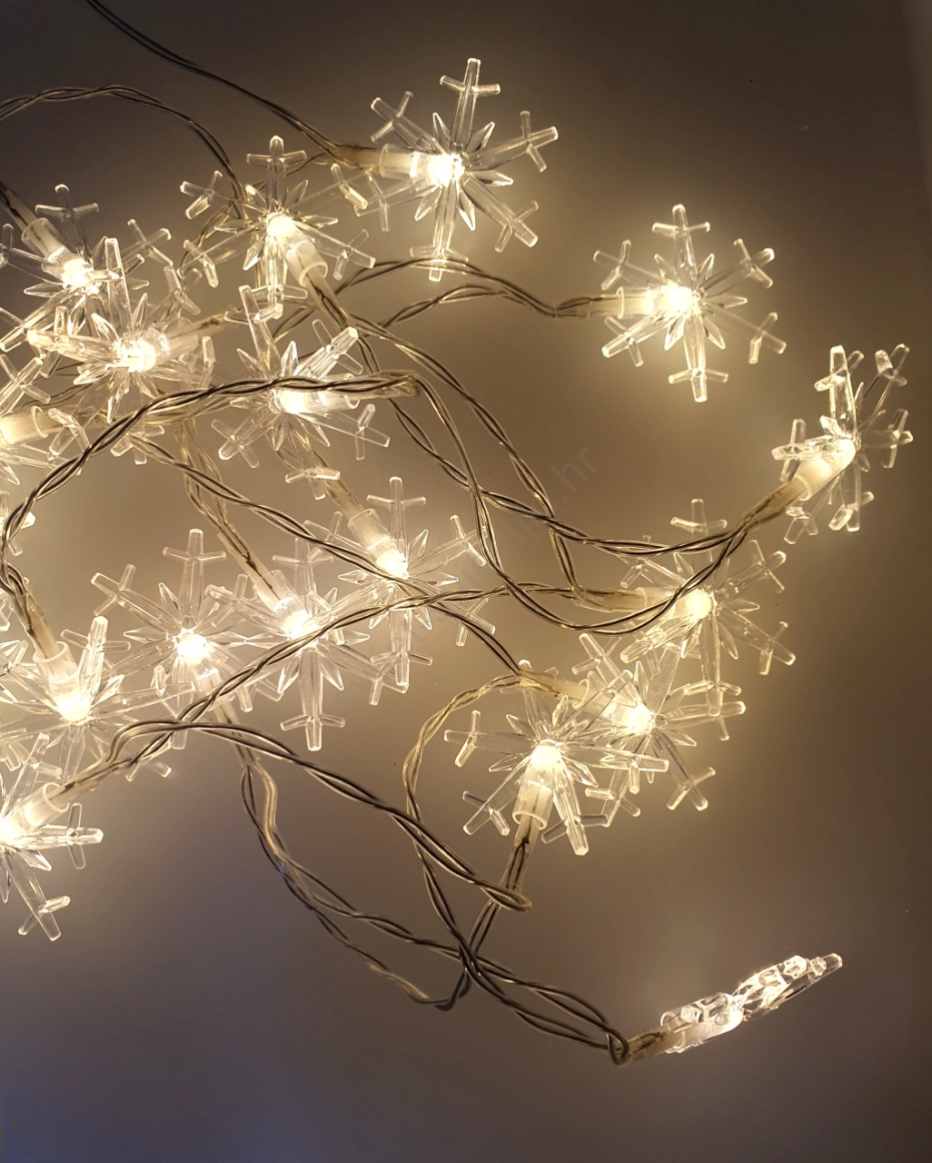 LED vanjski lanac 20xLED/2xAA 2,2 m IP44 topla bijela snježne pahulje