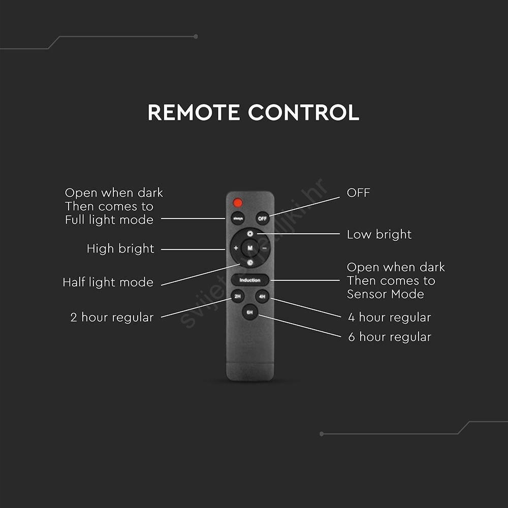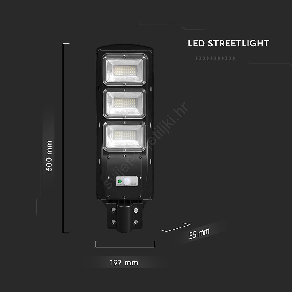 LED solarna ulična lampa s mogućnošću prigušivanja, senzorom pokreta i sumraka LED/12W/3,2V 6000K IP65 10000 mAh crna + daljinski upravljač