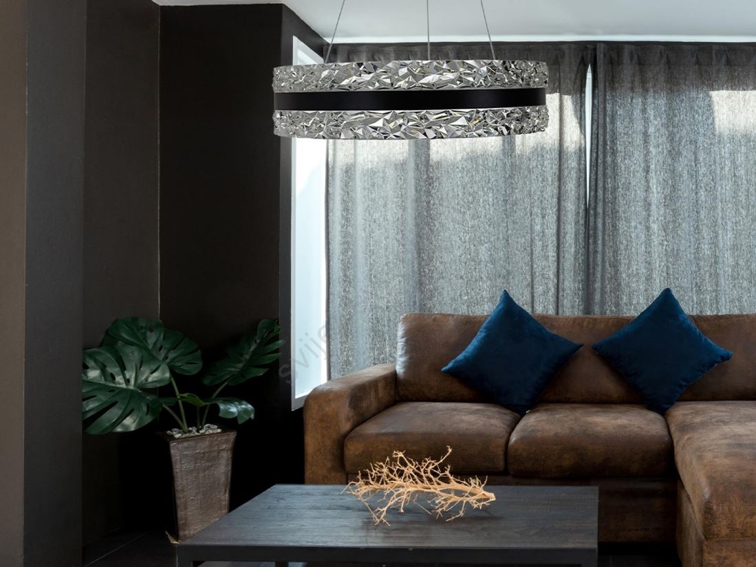 • LED prigušivi kristalni luster na užetu LED/80W/230V 3000-6500K crni + daljinski upravljač
