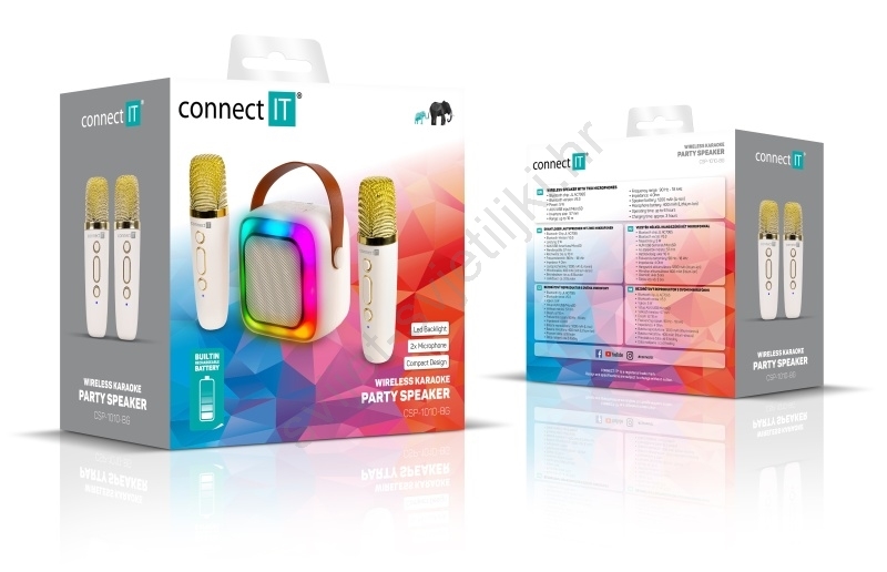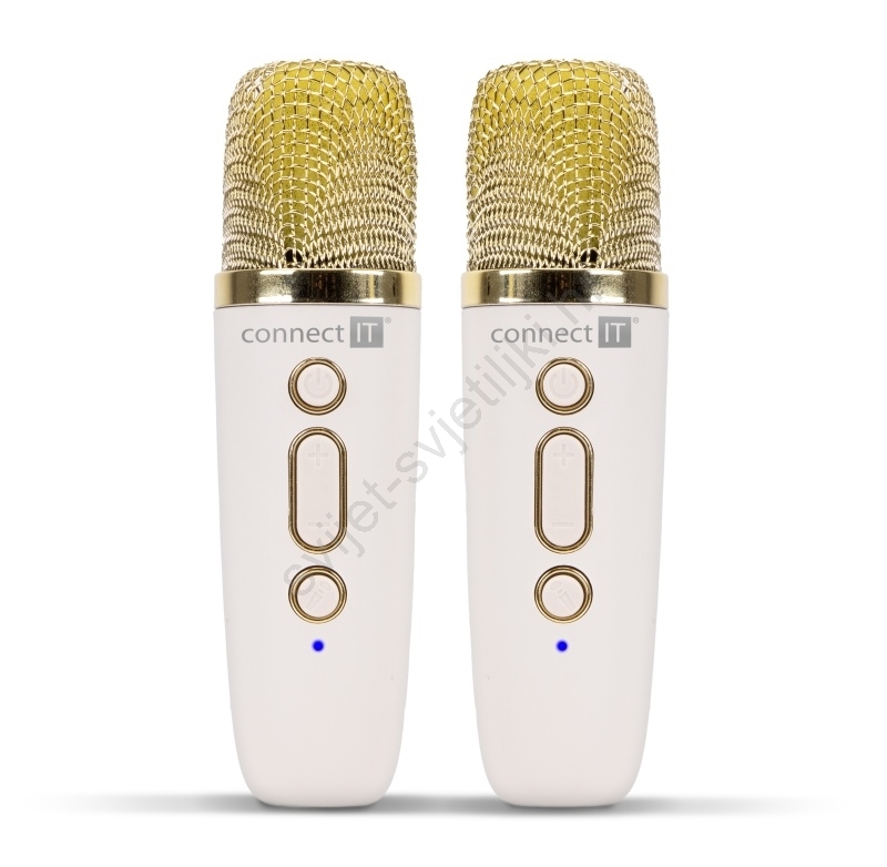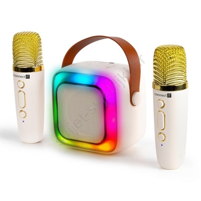 CONNECT IT CSP-1010-BG - LED RGB zvučnik s 2 bežična mikrofona, 5W/1200 mAh + 2x 400 mAh, krem/zlatna