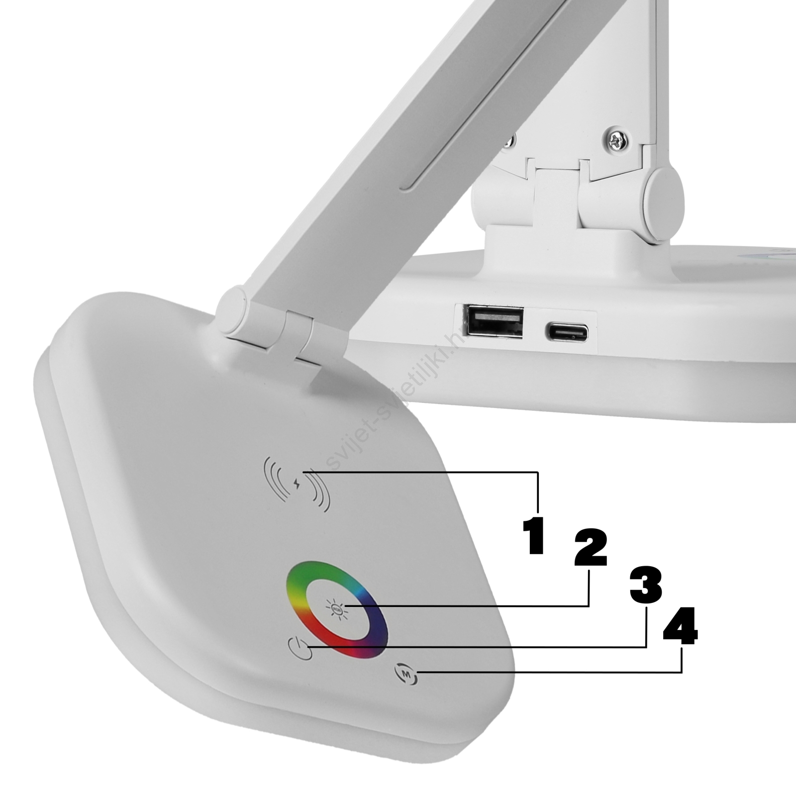 • LED RGBW stolna lampa s mogućnošću prigušivanja i bežičnim punjenjem LED/7W/5V USB bijela