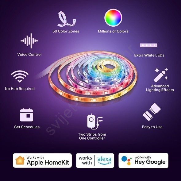 • Nije potreban središnji hub – traka se povezuje izravno putem Wi-Fi-ja.