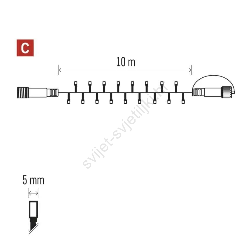 • Dužina osvijetljenog kabela: 10 m.