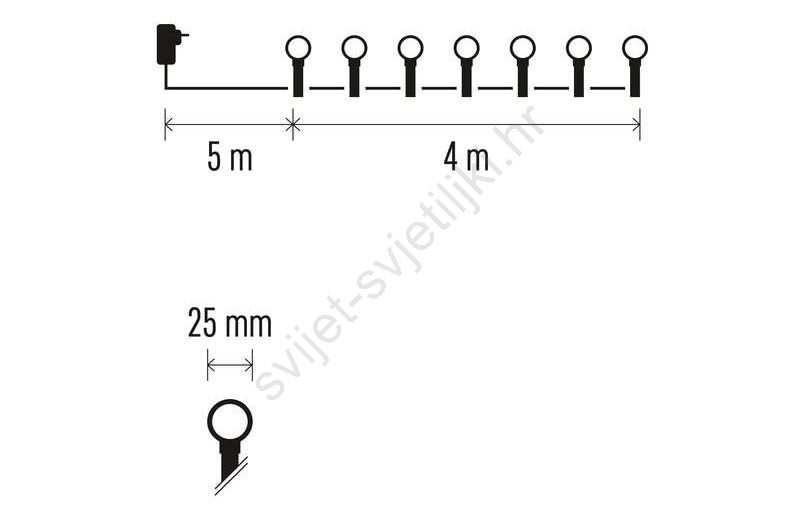 • Dužina osvijetljenog dijela kabela: 4 m.