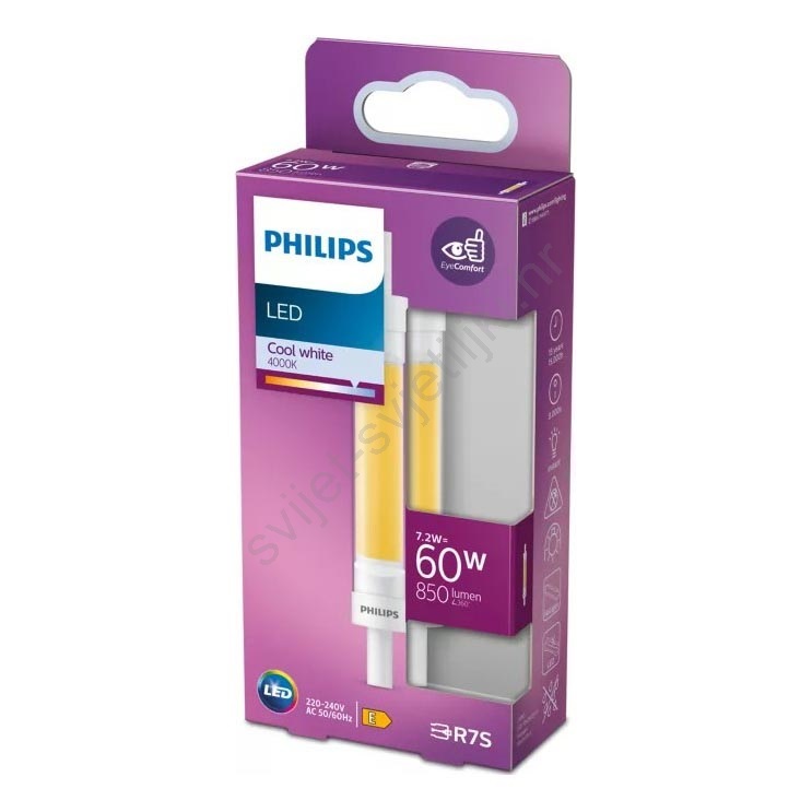 LED žarulja Philips R7s, 7,2 W, 230 V, 4000 K, 118 mm Kvalitetan dizajn osigurat će savršeno osvjetljenje vašeg interijera. Kategorija R7s posvećena je žaruljama s istim grlom. U našoj e-trgovini možete birati između žarulja s klasičnom žarnom niti ili velikog broja modernih LED žarulja koje su energetski učinkovitije i imaju dulji životni vijek.