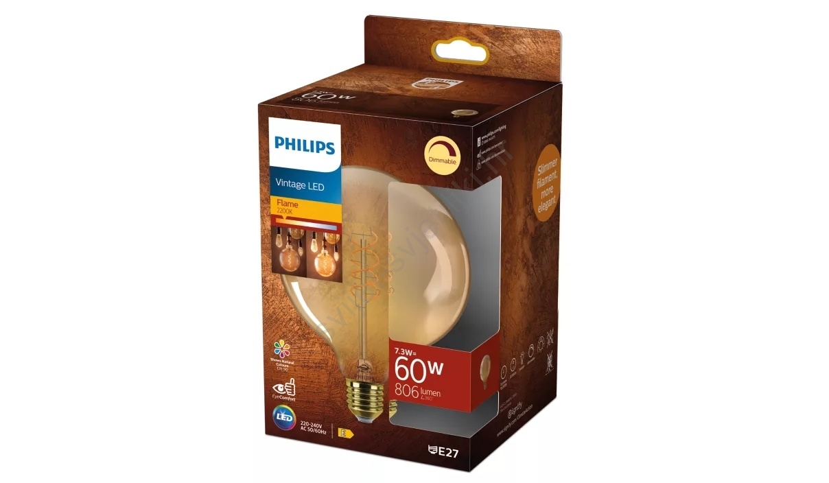LED žarulja s prigušivanjem VINTAGE Philips G125 E27/7,3W/230V 2200K