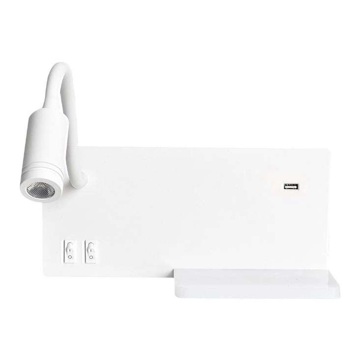 •  Ploča na kojoj je zidna lampa postavljena također je opremljena praktičnom USB utičnicom s policom, te dva prekidača koja se mogu koristiti za punjenje pametnog telefona i drugih elektroničkih uređaja.