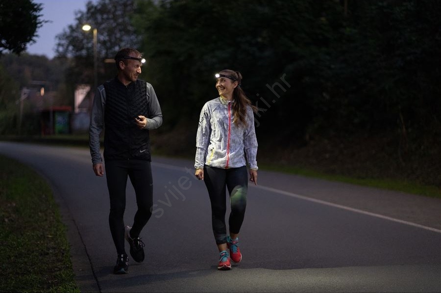 • Čelnu svjetiljku također je moguće pričvrstiti na prsni remen, čime se sprječava zasljepljivanje trkača ili pješaka iz suprotnog smjera.