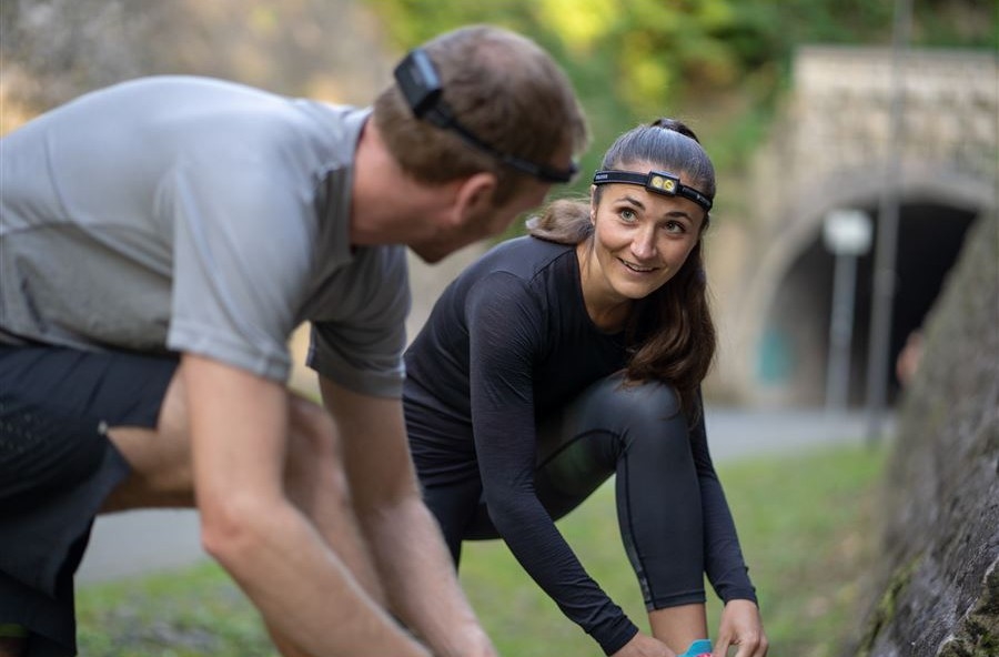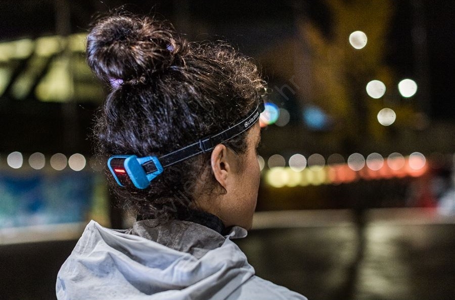 • Čelnu svjetiljku moguće je također pričvrstiti na prsni remen, čime se sprječava zasljepljivanje trkača ili pješaka iz suprotnog smjera.