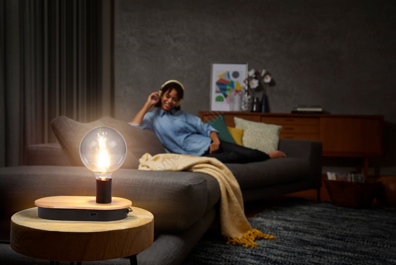 Ledvance - Stolna lampa s dodirnim zaslonom i USB priključkom DECOR WOOD 1xE27/8W/230V guma drvo