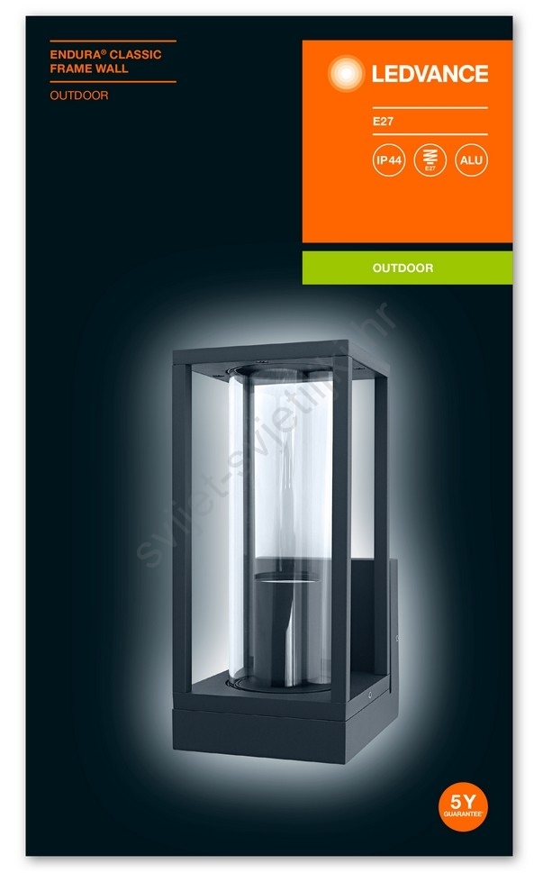 Ledvance - Vanjska zidna svjetiljka FRAME 1xE27/60W/230V IP44 karakterizira lijep i funkcionalan dizajn. Za svjetiljku je prikladna žarulja s bazom E27. Ovdje možete kupiti i druge žarulje po povoljnim cijenama. Bit će zanimljiv dodatak Vašem domu.