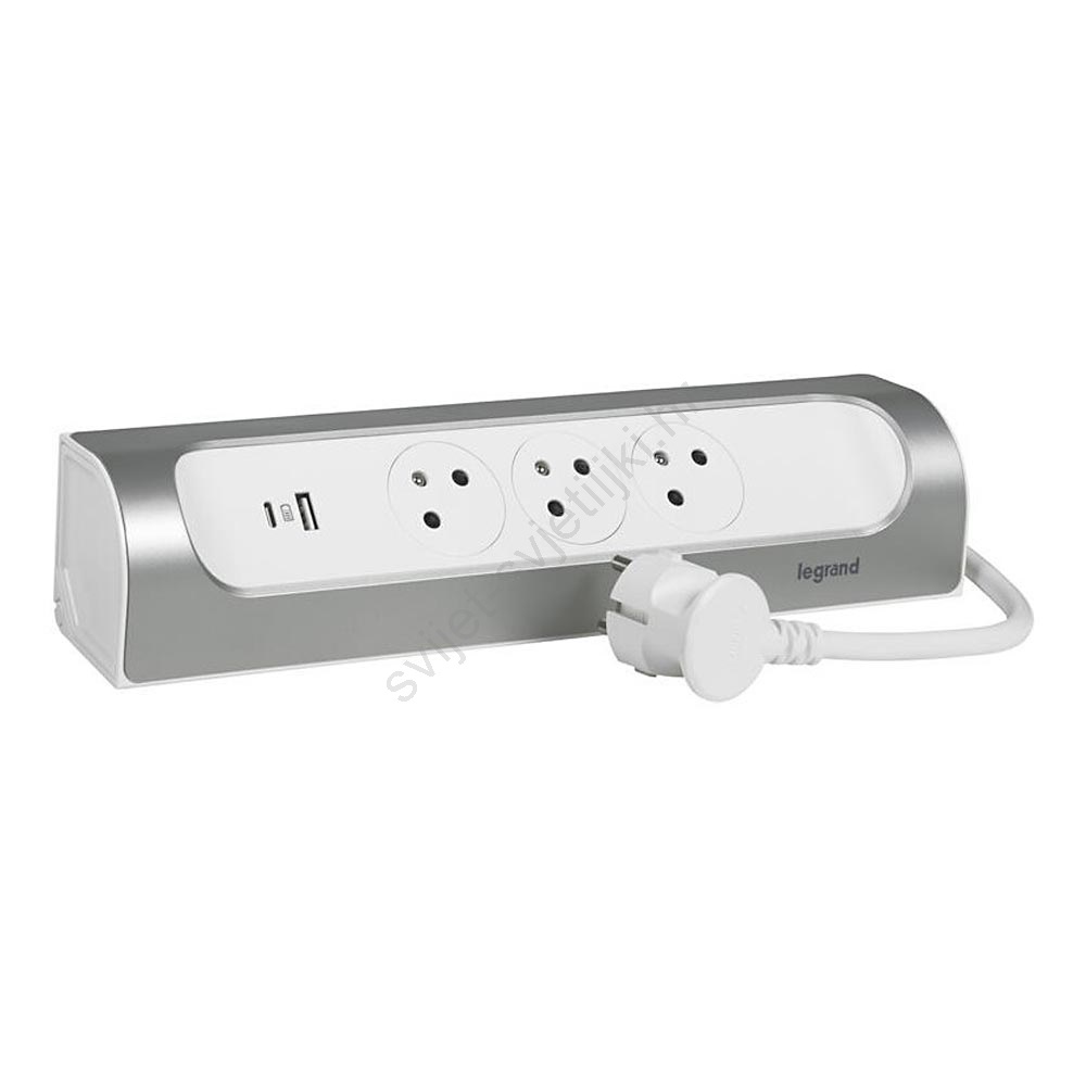 Legrand 049406 - Produžni kabel, 3 utičnice, tip E + USB-A + USB-C, 1 m, srebrni/bijeli