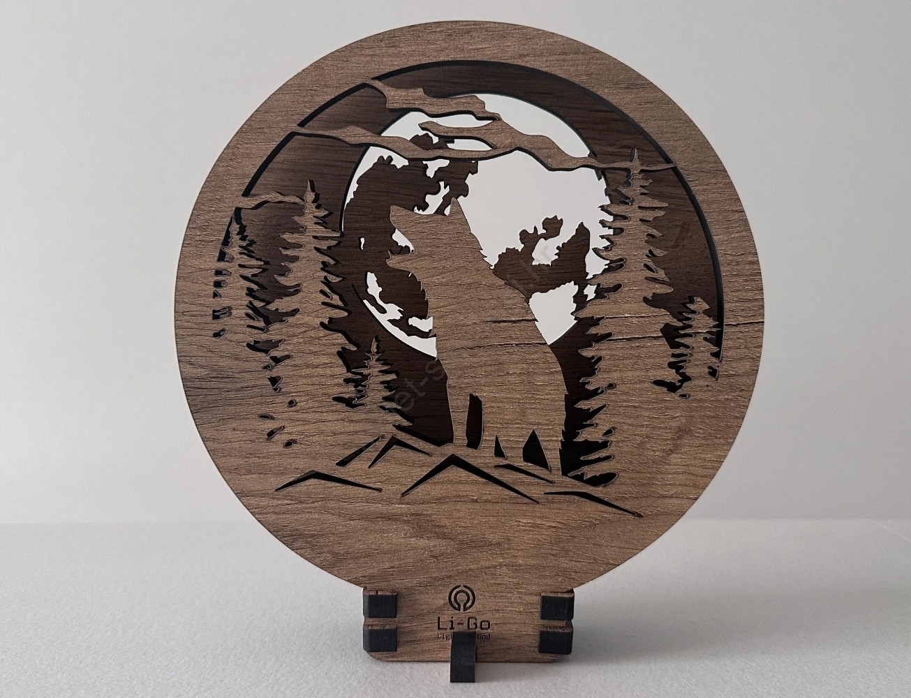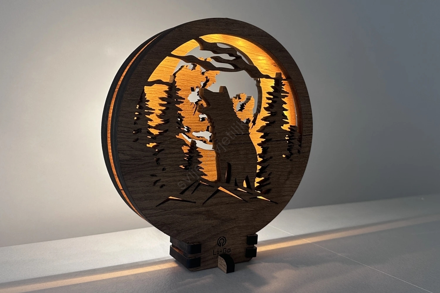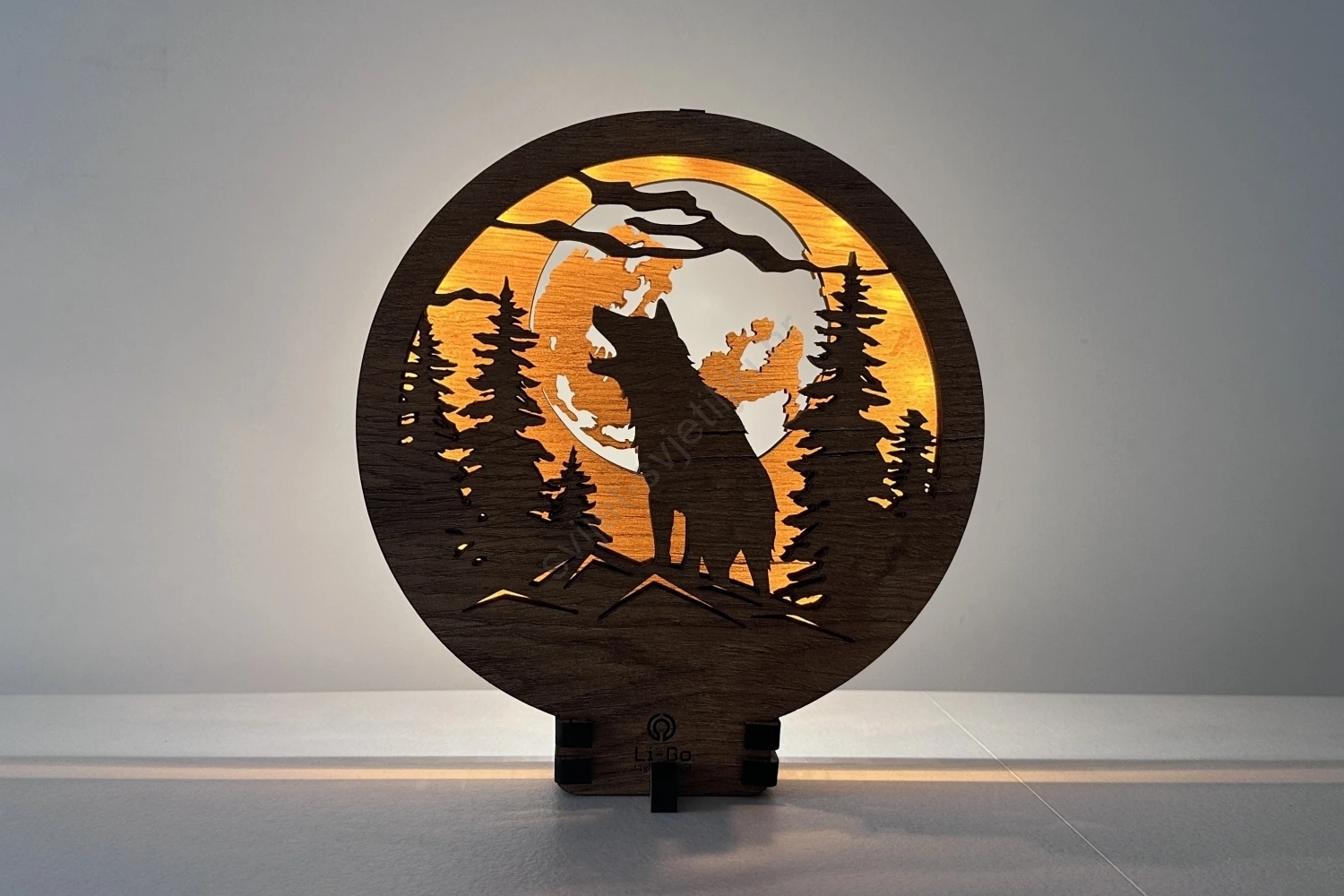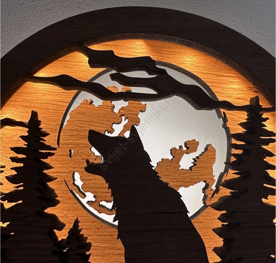 Li-Go 23574/DUB2 - LED stolna dekoracija s mogućnošću prigušivanja LED/12W/230V 20x22 cm hrast/Vuk i mjesec