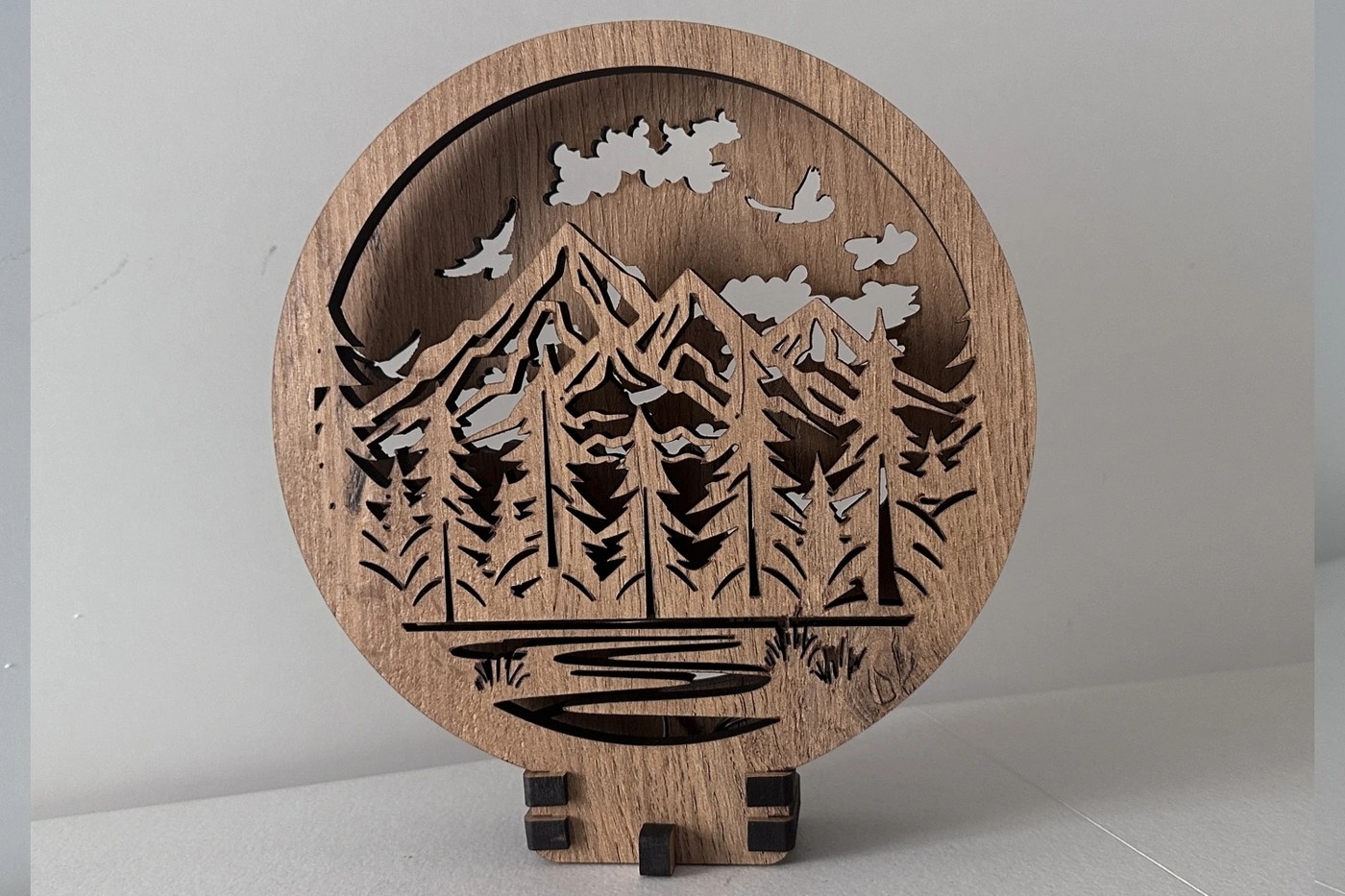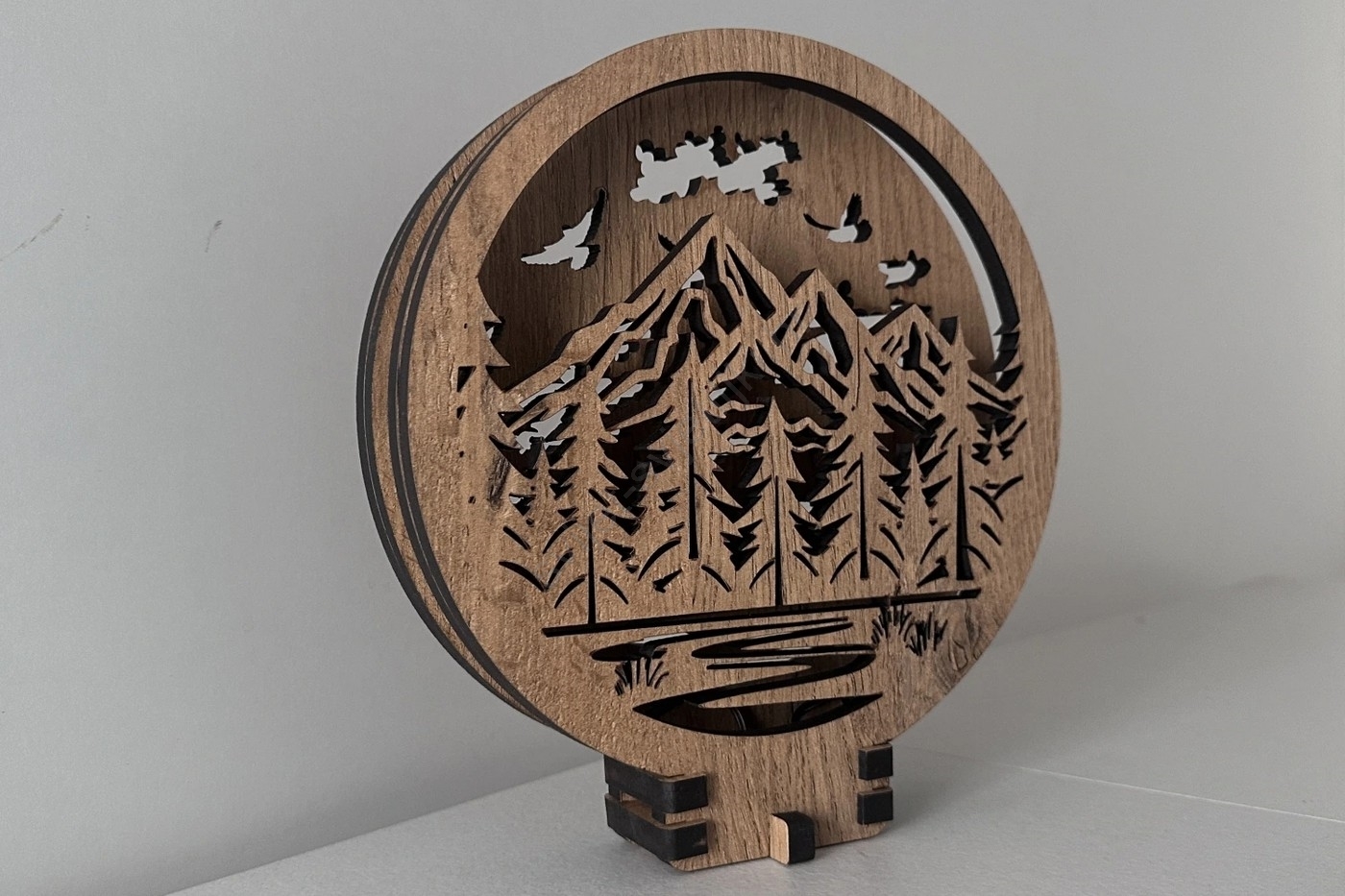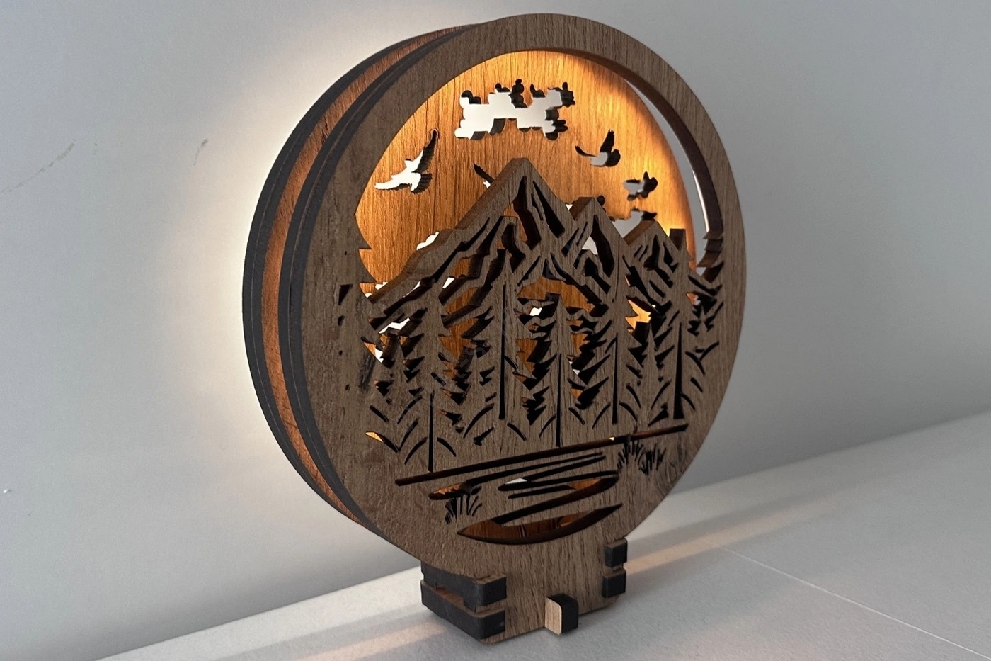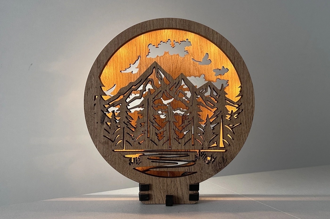 Li-Go 23583/DUB2 - LED stolna dekoracija s mogućnošću prigušivanja LED/12W/230V 20x22 cm hrast/Planine i šuma