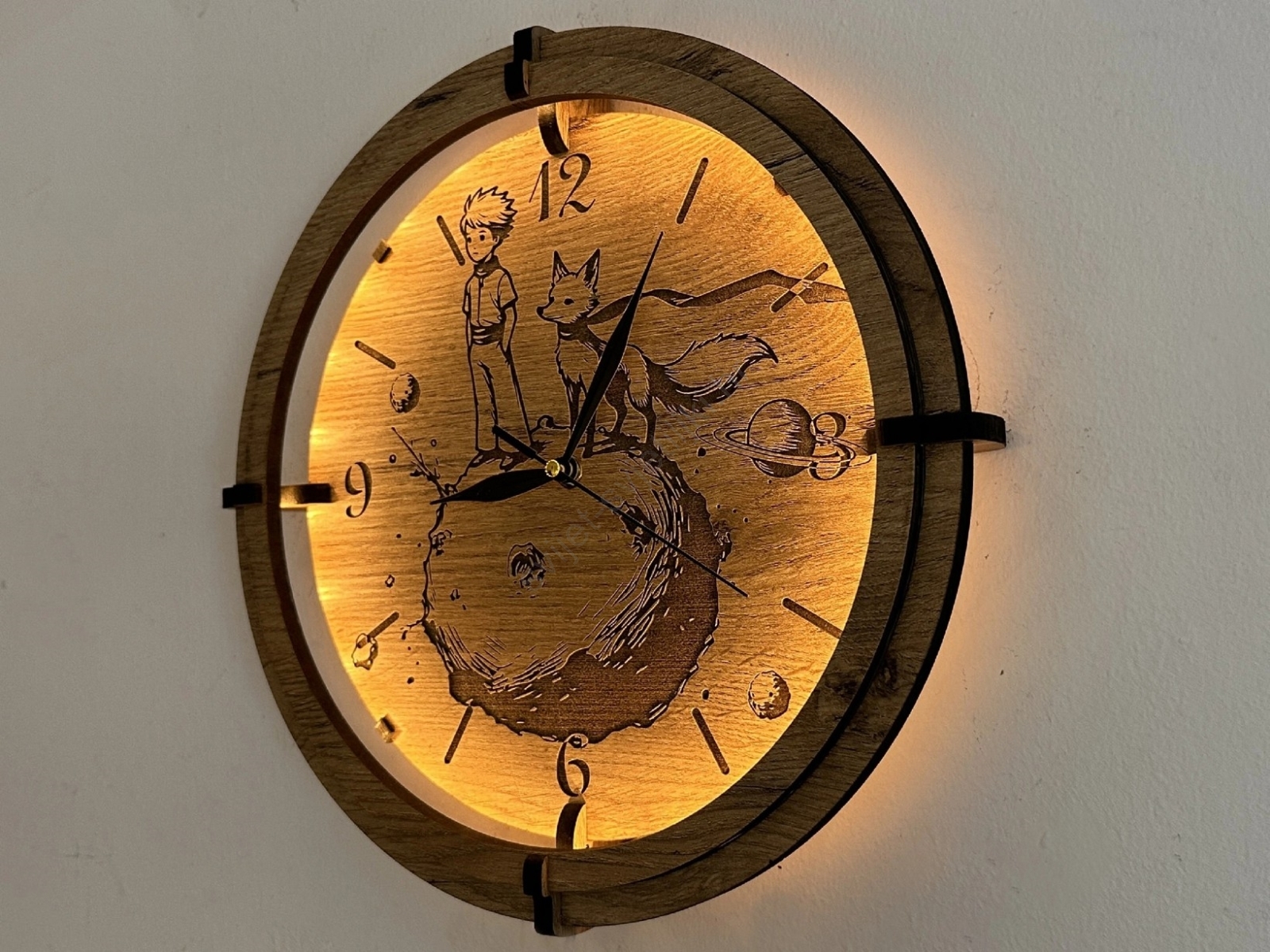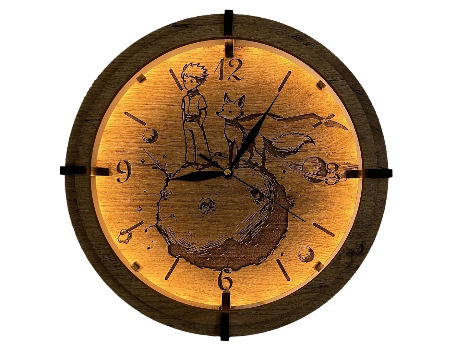 Li-Go 23712/DUB/BAT2 - LED prigušivi sat s senzorom pokreta LED/10W/5V 20000 mAh + 1xAA Ø 32 cm hrast/Mali princ