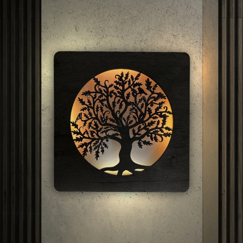 Li-Go 5275/DUB2 - LED zidna dekoracija s mogućnošću podešavanja svjetline LED/10W/5V 20000 mAh 42x42 cm hrast/Hrast u krugu + daljinsko upravljanje