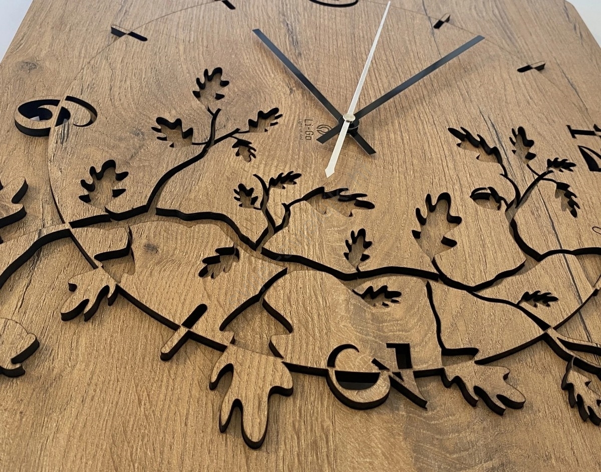 • Drveni sat s jedinstvenim rezbarenim motivom.
