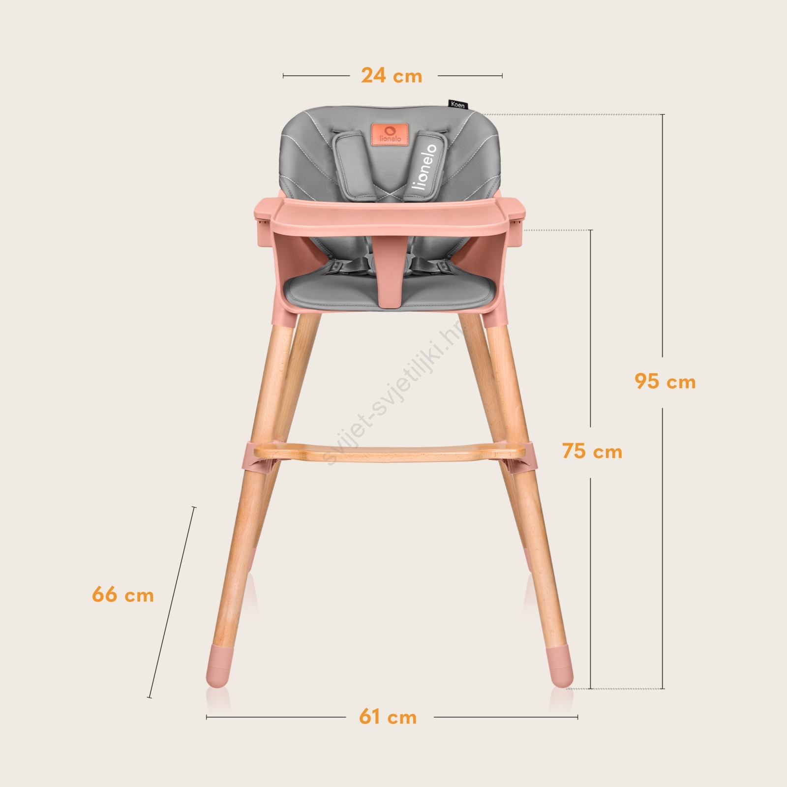 Lionelo - Dječja stolica za hranjenje 2u1 KOEN Pink Rose