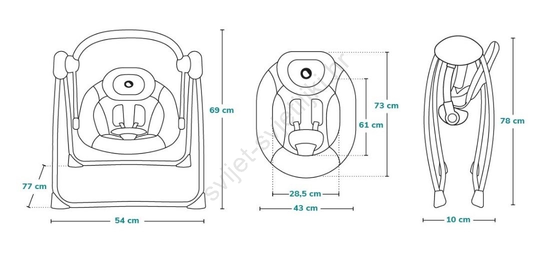 • Ljuljačka pogodna od rođenja do 9 kg ili dok dijete ne počne samostalno sjediti.