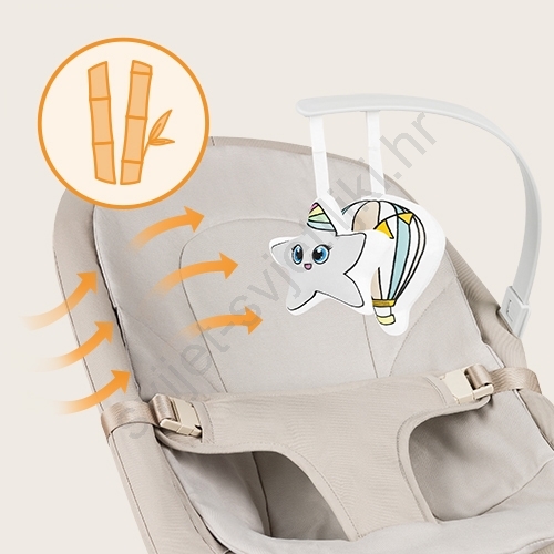 • Mekana presvlaka od bambusne tkanine - hipoalergena, antibakterijska, prozračna i ugodna na osjetljivoj dječjoj koži.