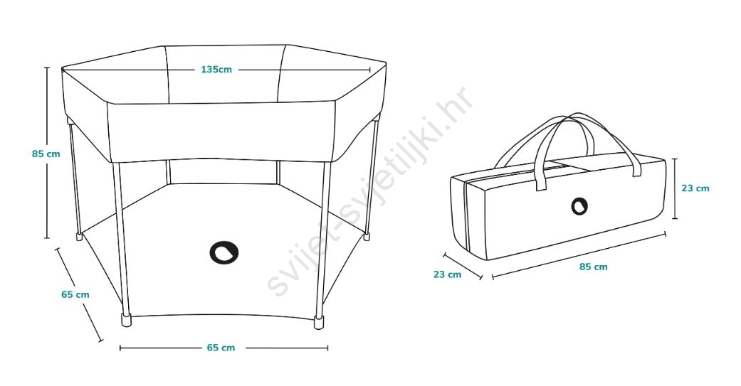 • Ograda se isporučuje s putnom torbom s praktičnom ručkom za jednostavno nošenje.