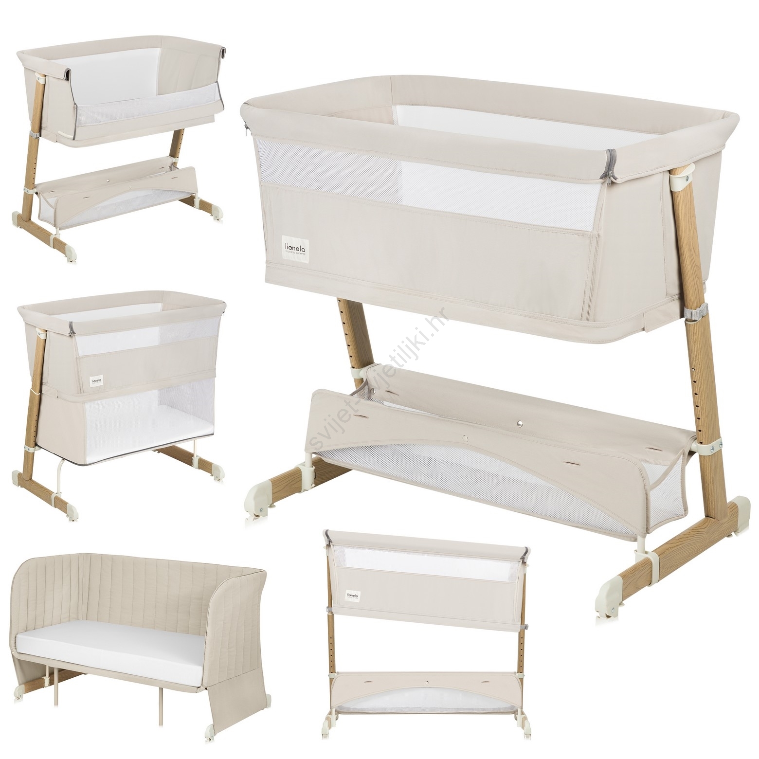 • Pristavna posteljica s uklonjivom bočnom stranicom i podesivim nogama za prilagodbu visini roditeljskog kreveta.