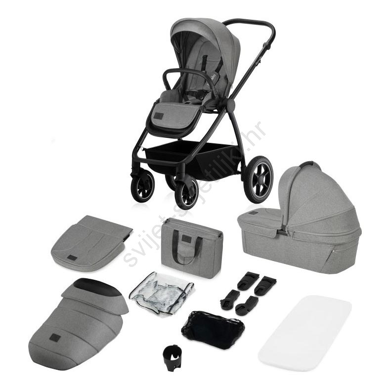 • Set dodatne opreme: navlaka za noge, mrežica protiv komaraca, navlaka za košaru, kišna navlaka, torba za roditelje, držač za šalicu, koš s mogućnošću zaključavanja.