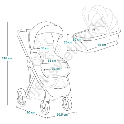 • Kompletan set dodatne opreme (mreža protiv komaraca, kišna navlaka, navlake, torba, podloga za presvlačenje).